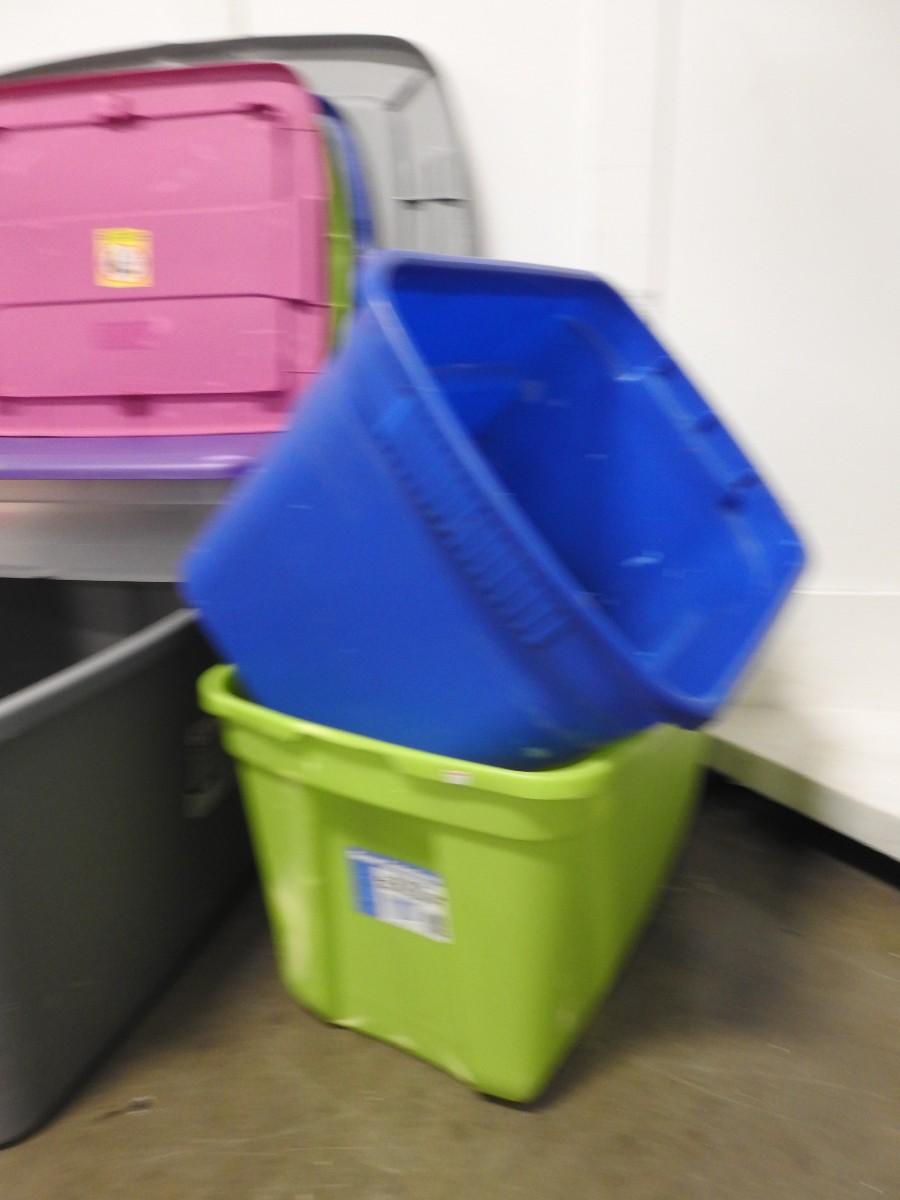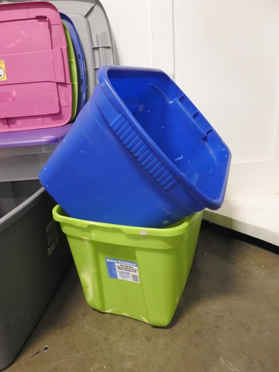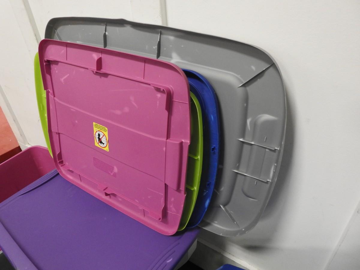 5 Assorted Plastic Totes, All With Lids, Some Slight Cracks in Lids