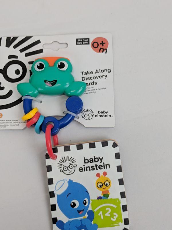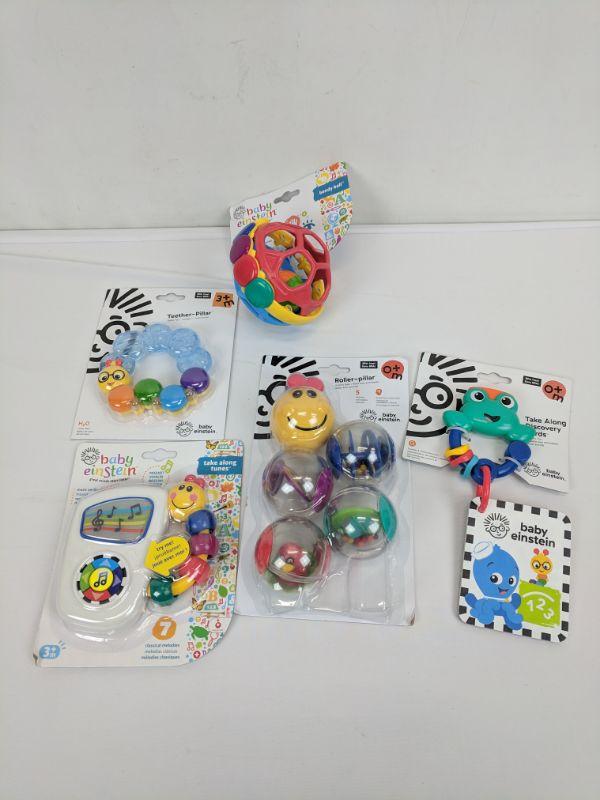 5 Baby Einstein Toys, Bendy Ball, Roller-Pillar, Discover Cards, Teether, Tunes - New