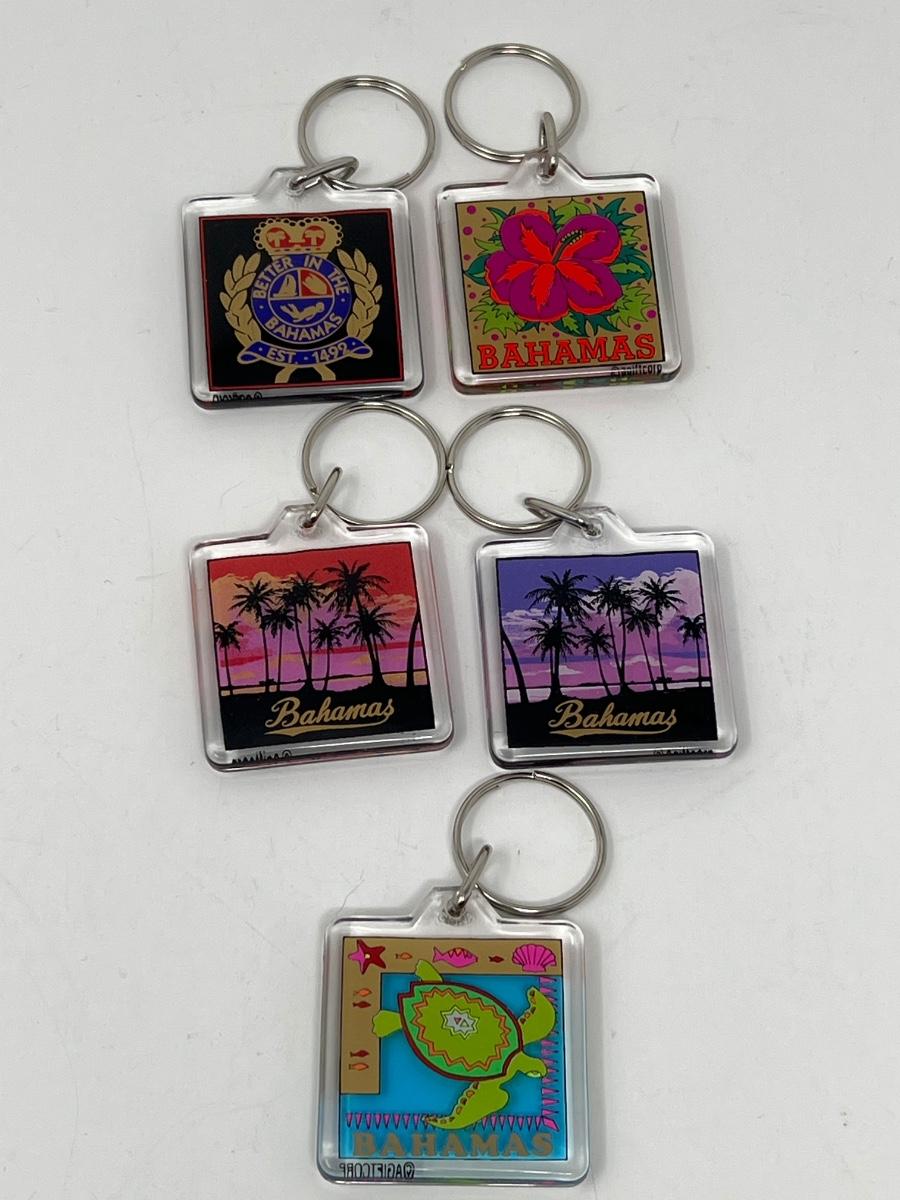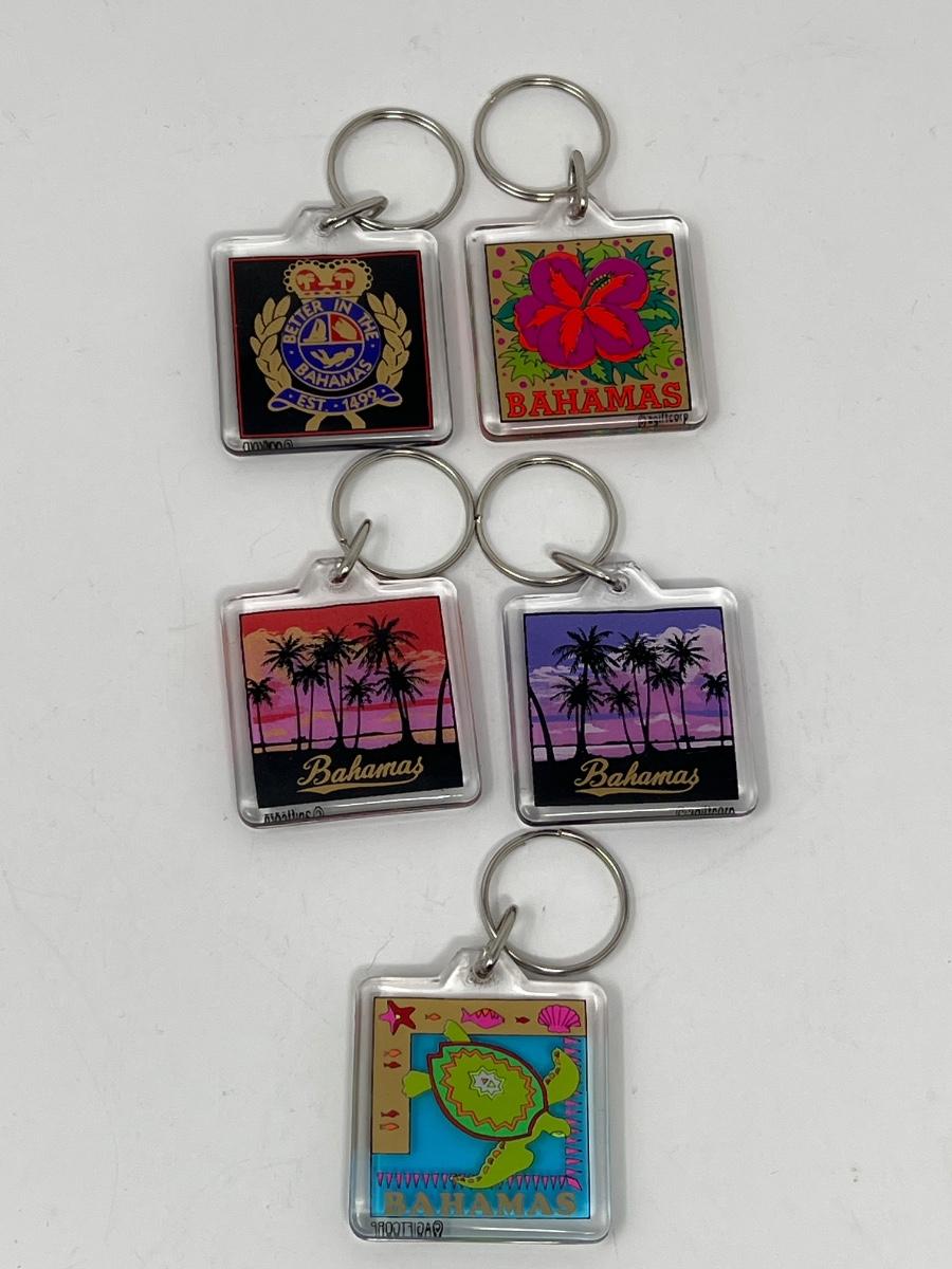 5 collectible Bahamas key chains - 1.5” x 1.5”.