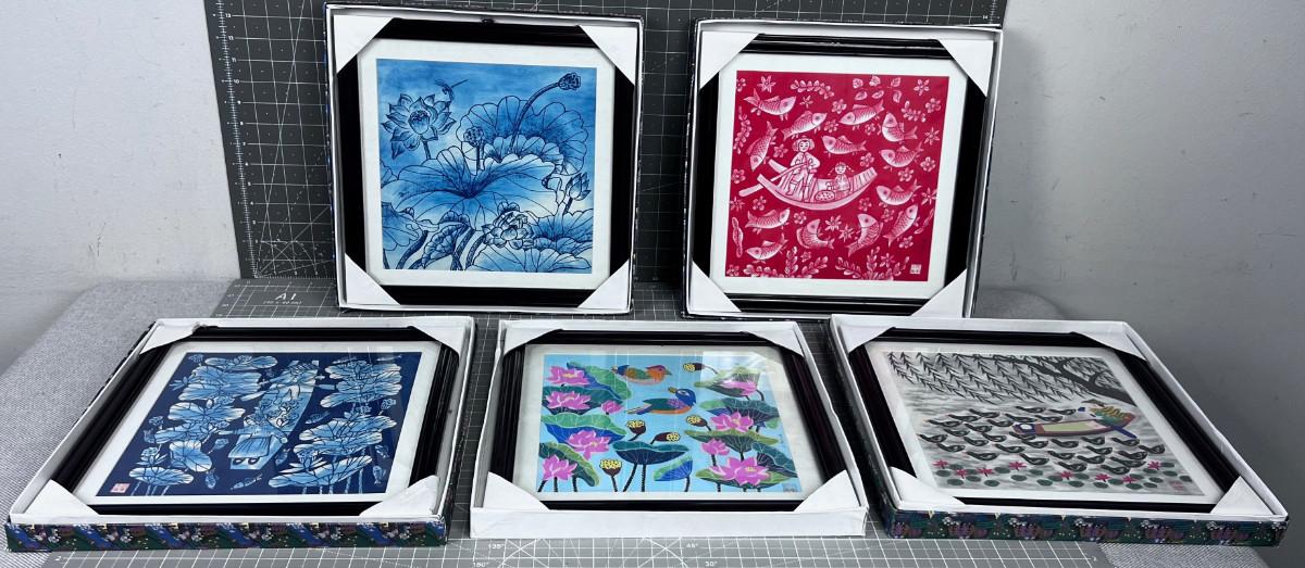 (5) Block Painting Prints Framed in Origin Boxes