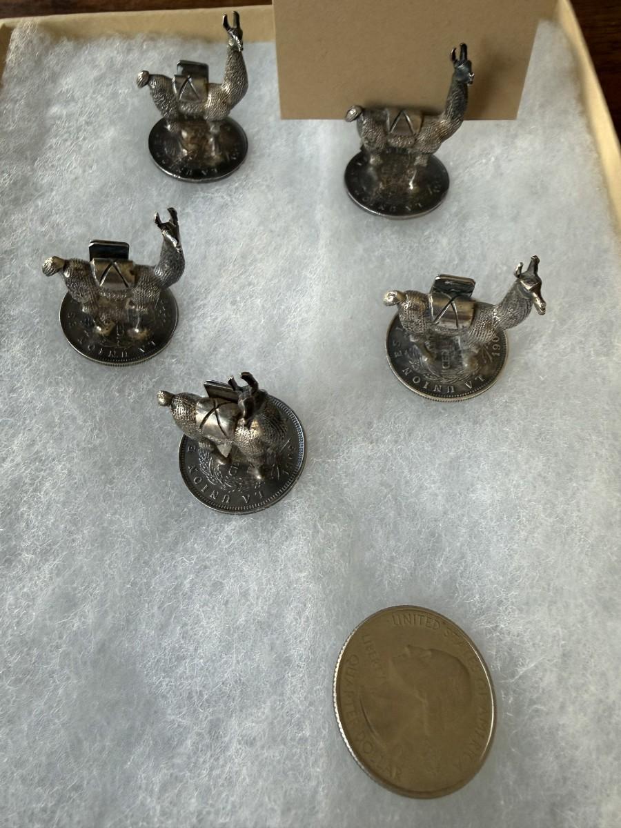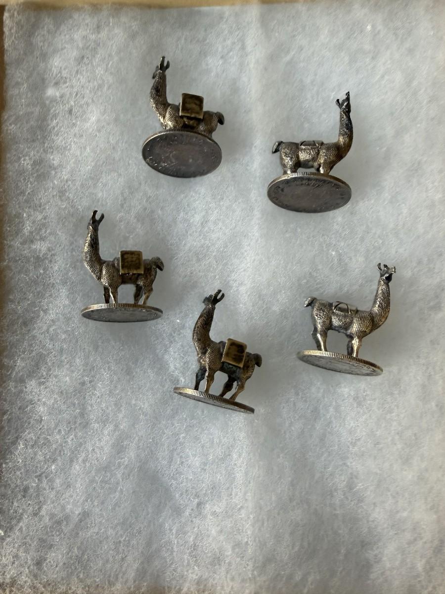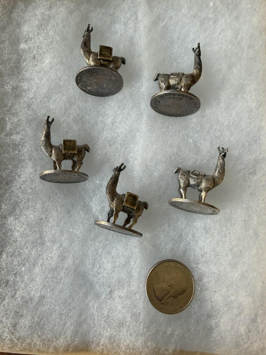 5 Bolivian Cast silver llama pieces on 1909 20 Centavo coins