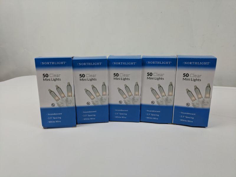 5 Boxes 50 Clear Mini Lights, White Wire - New