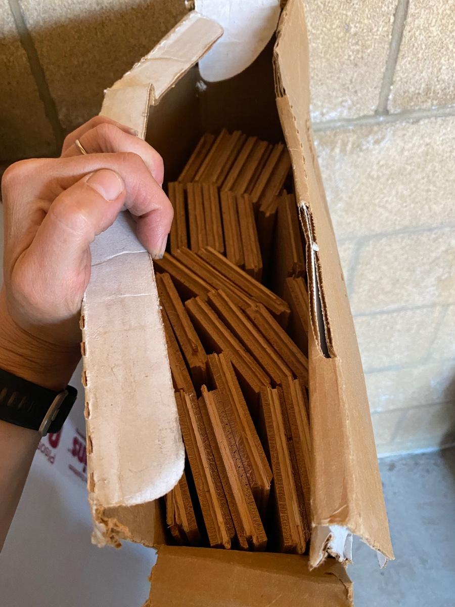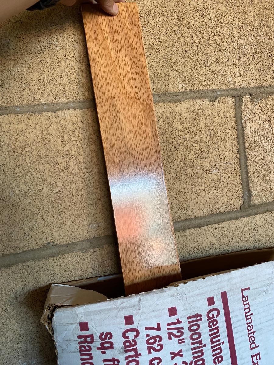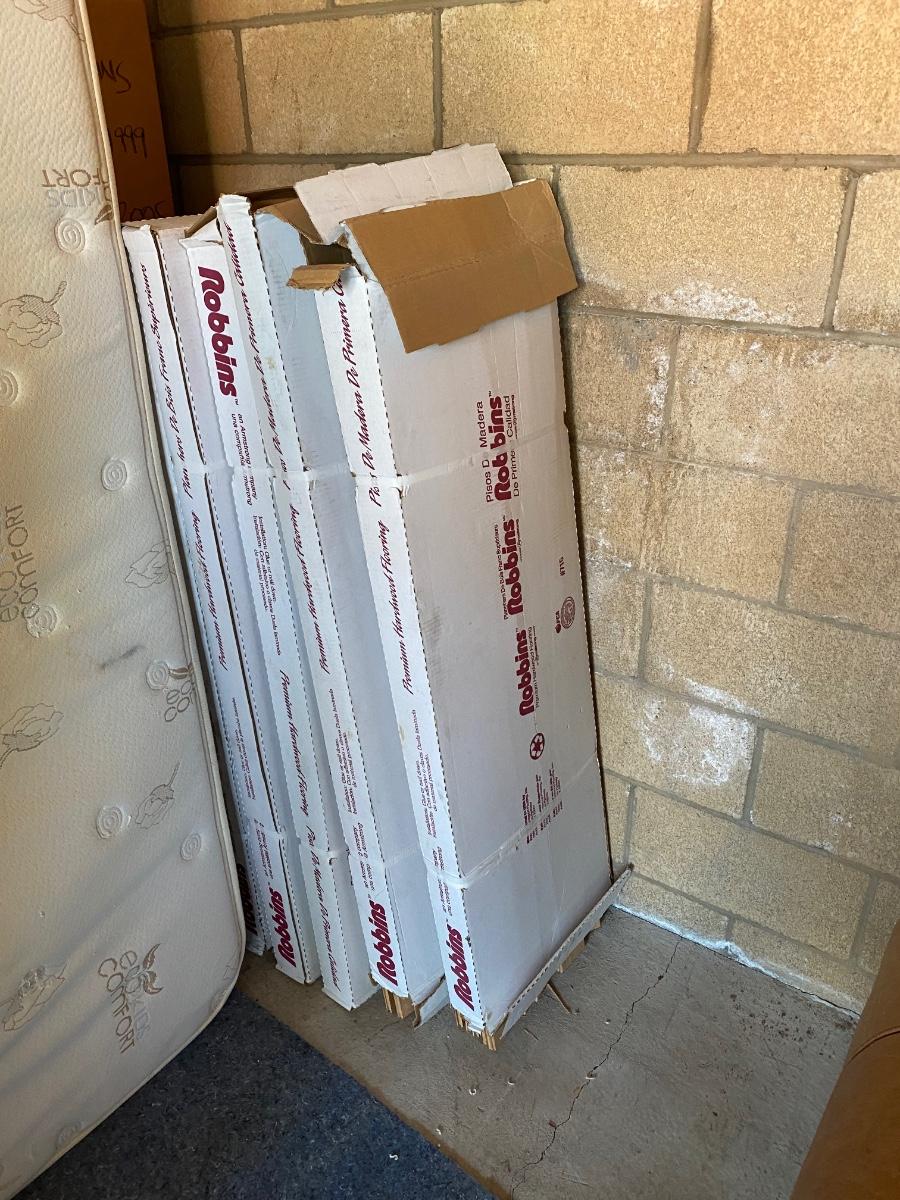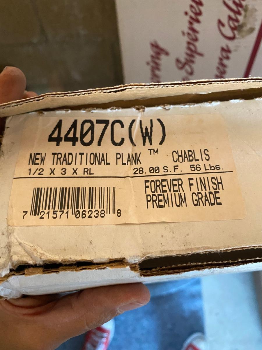 5 Boxes of Robbins New Traditional Laminated Plank Flooring Engineered Oak Light Finish. A couple boxes are open at the end but may still be complete, look full. Each box contains 28 sq. ft according to box. As is. May be discontinued flooring, unsure of age.