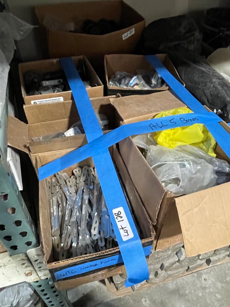 5 Boxes of Steel hangars & bracket pieces/Lots of Metal in this lot and mostly new