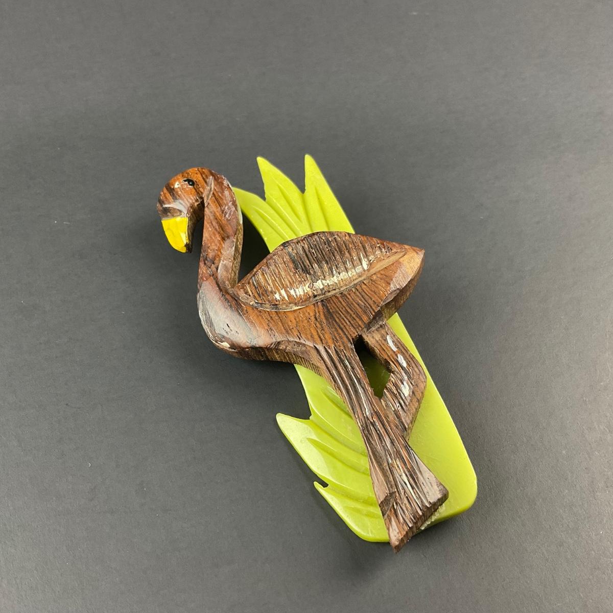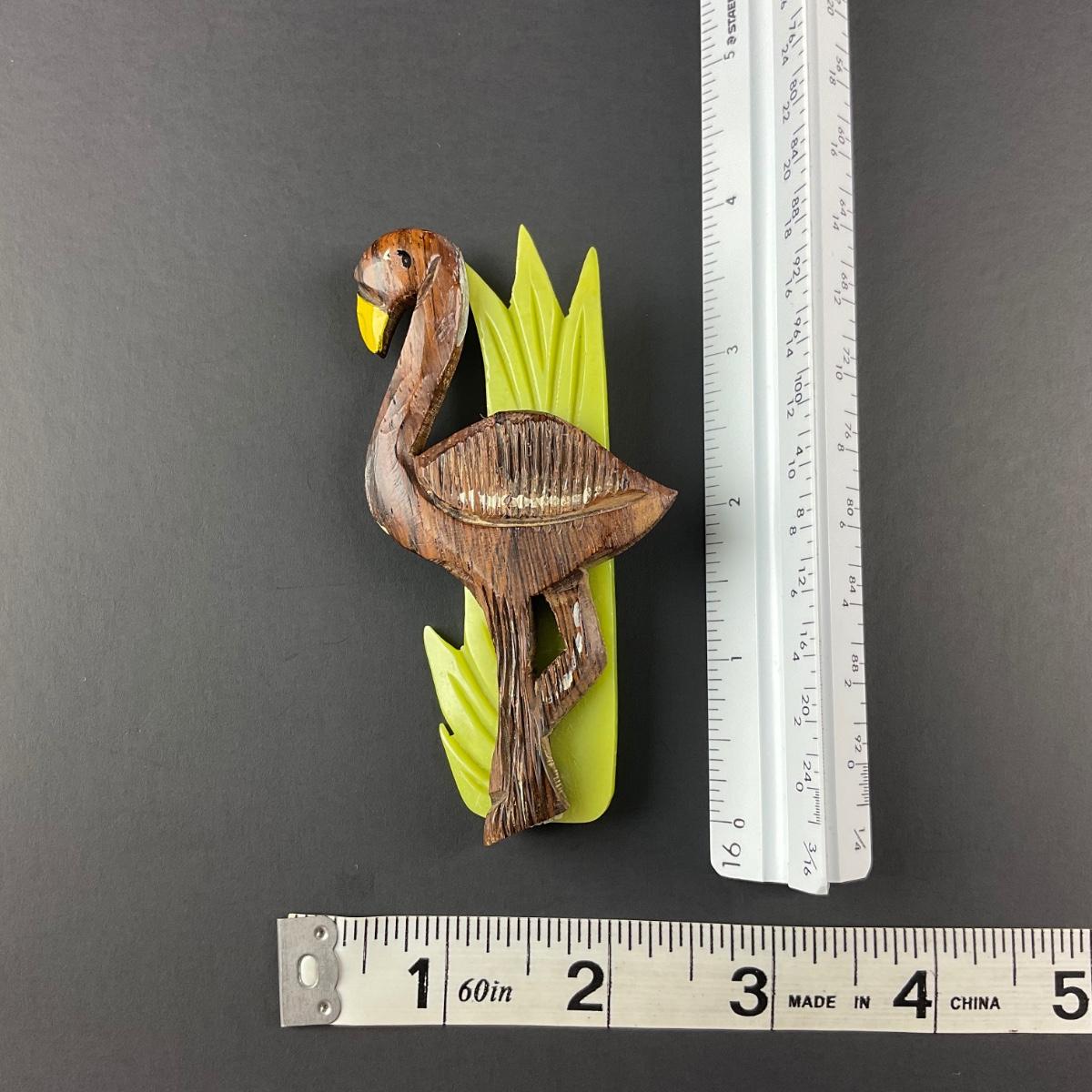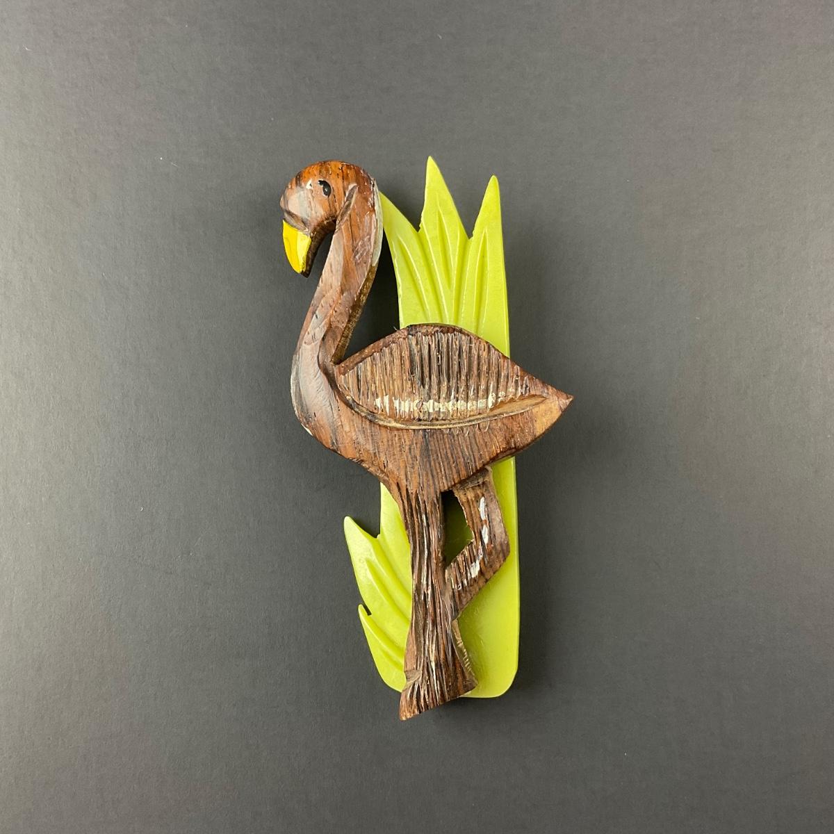 -5- BROOCH | Rosewood & Bakelite Flamingo Pin