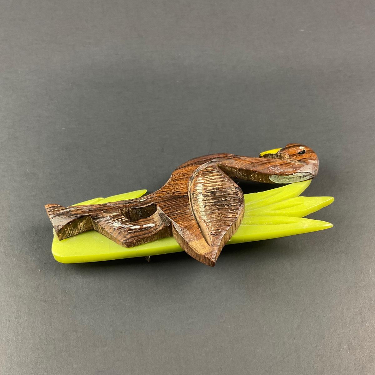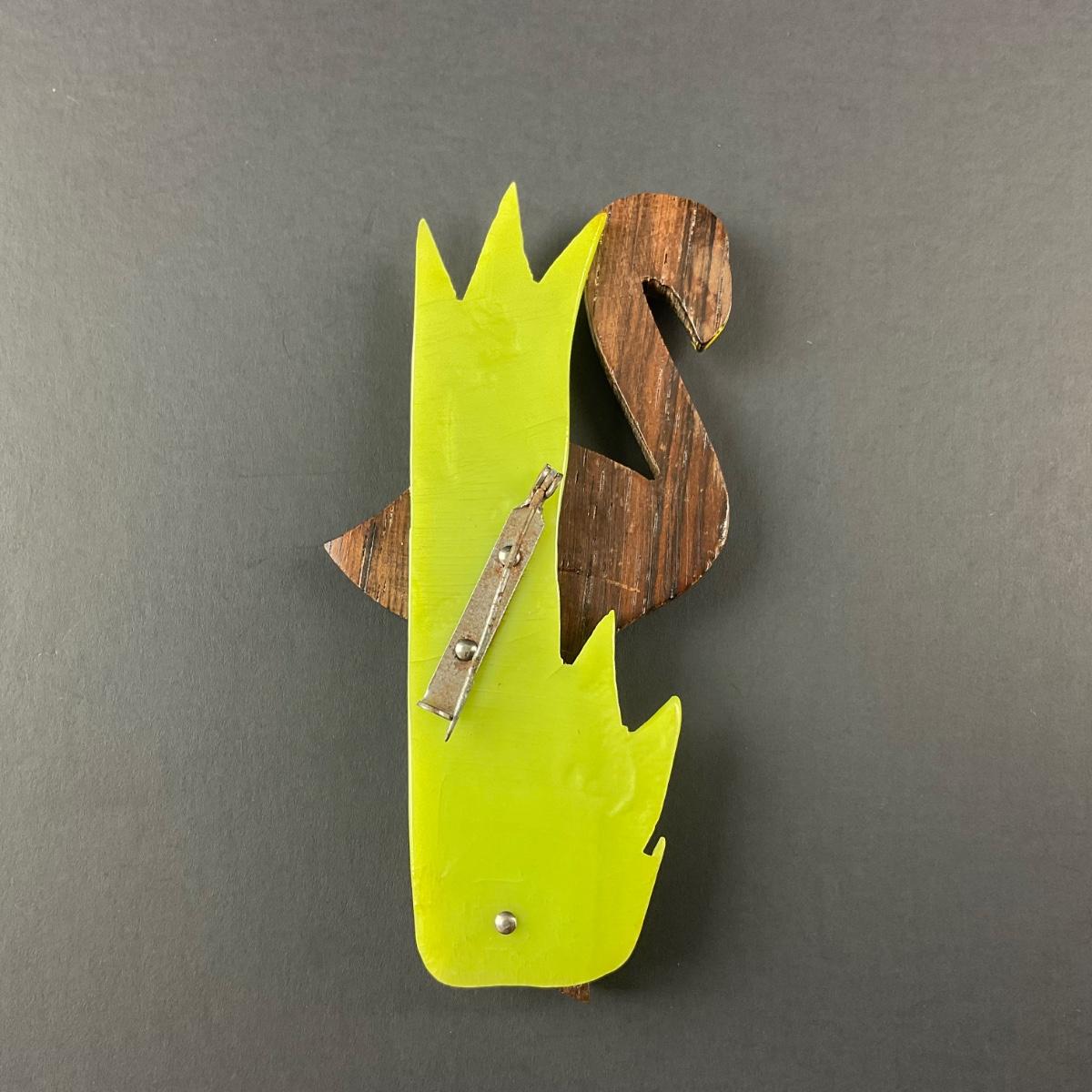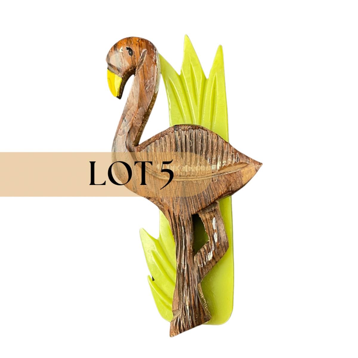 -5- BROOCH | Rosewood & Bakelite Flamingo Pin