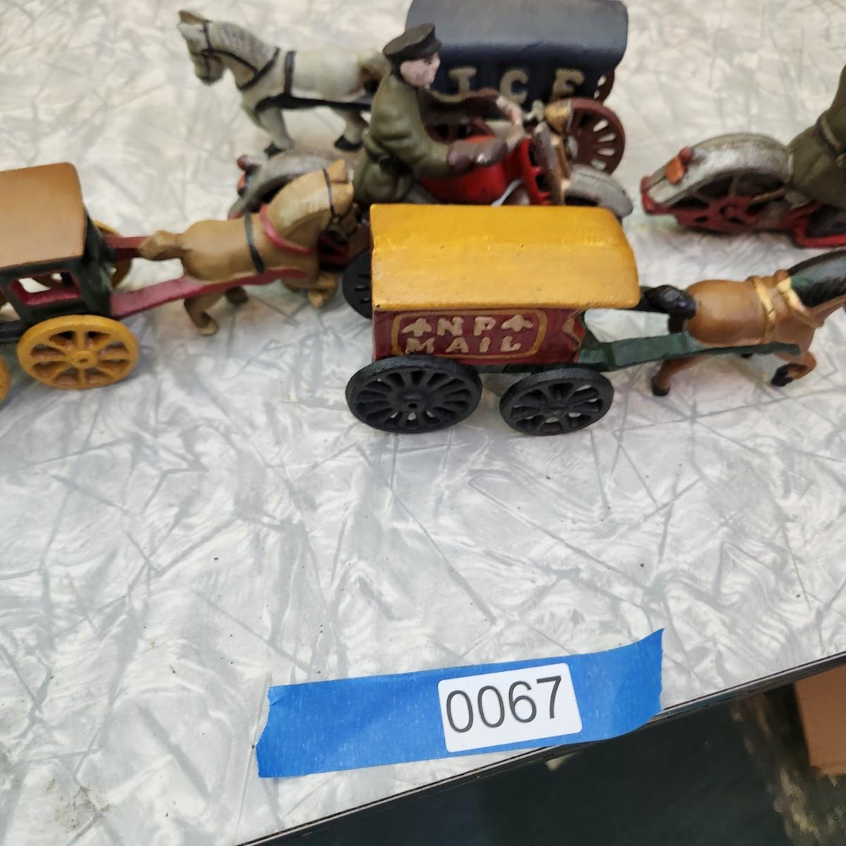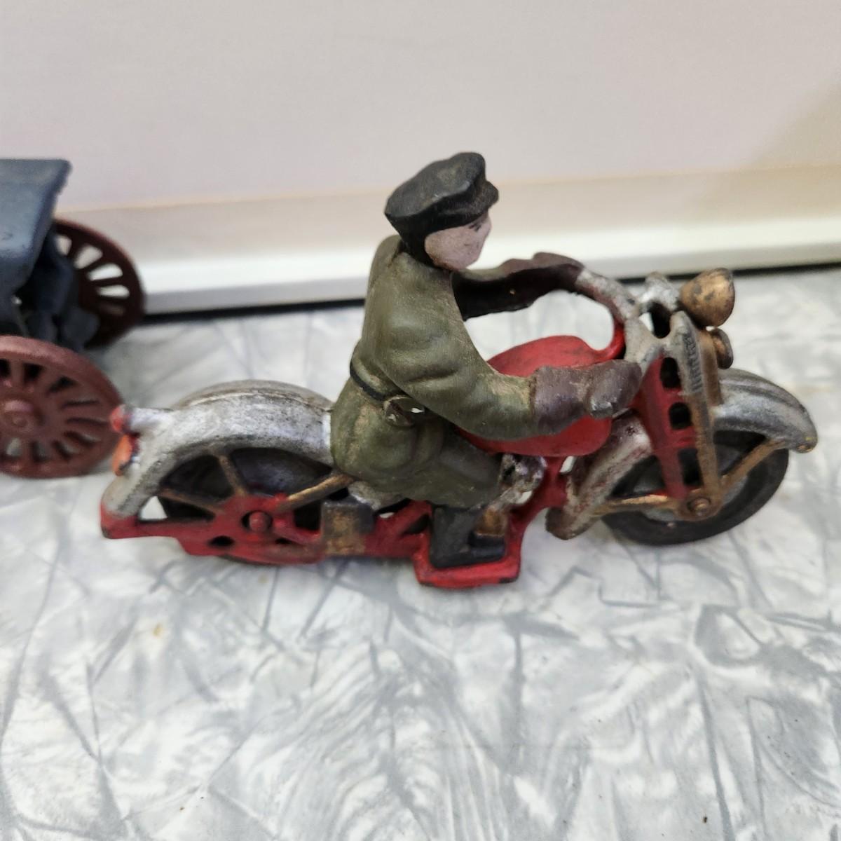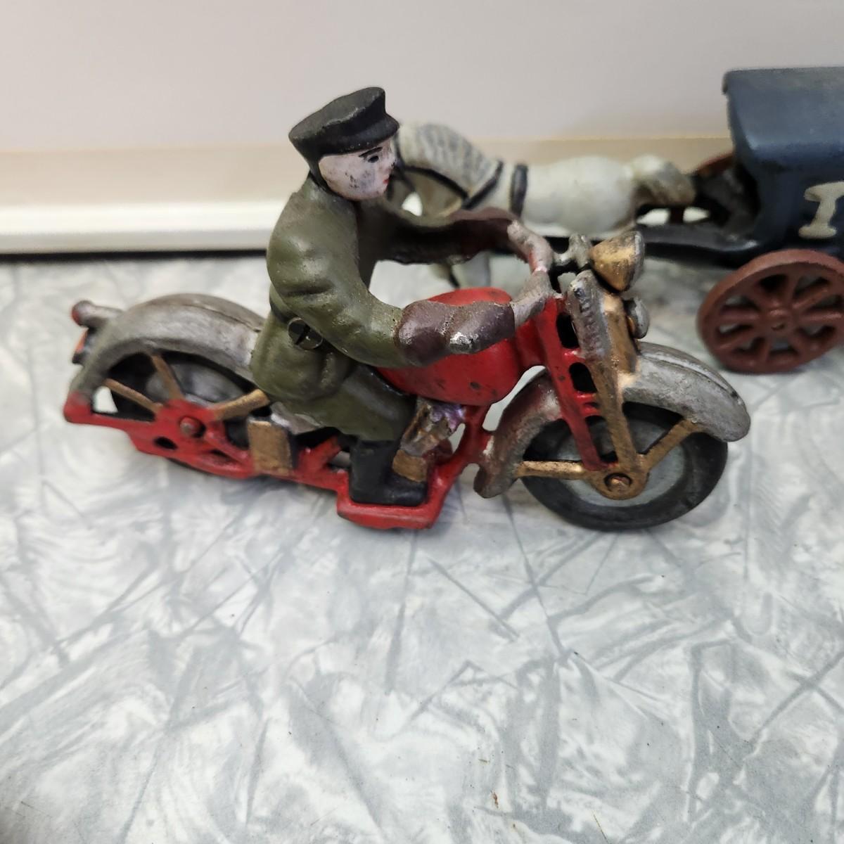 5 Cast Metal Toys Motorcycles Horse and Wagon