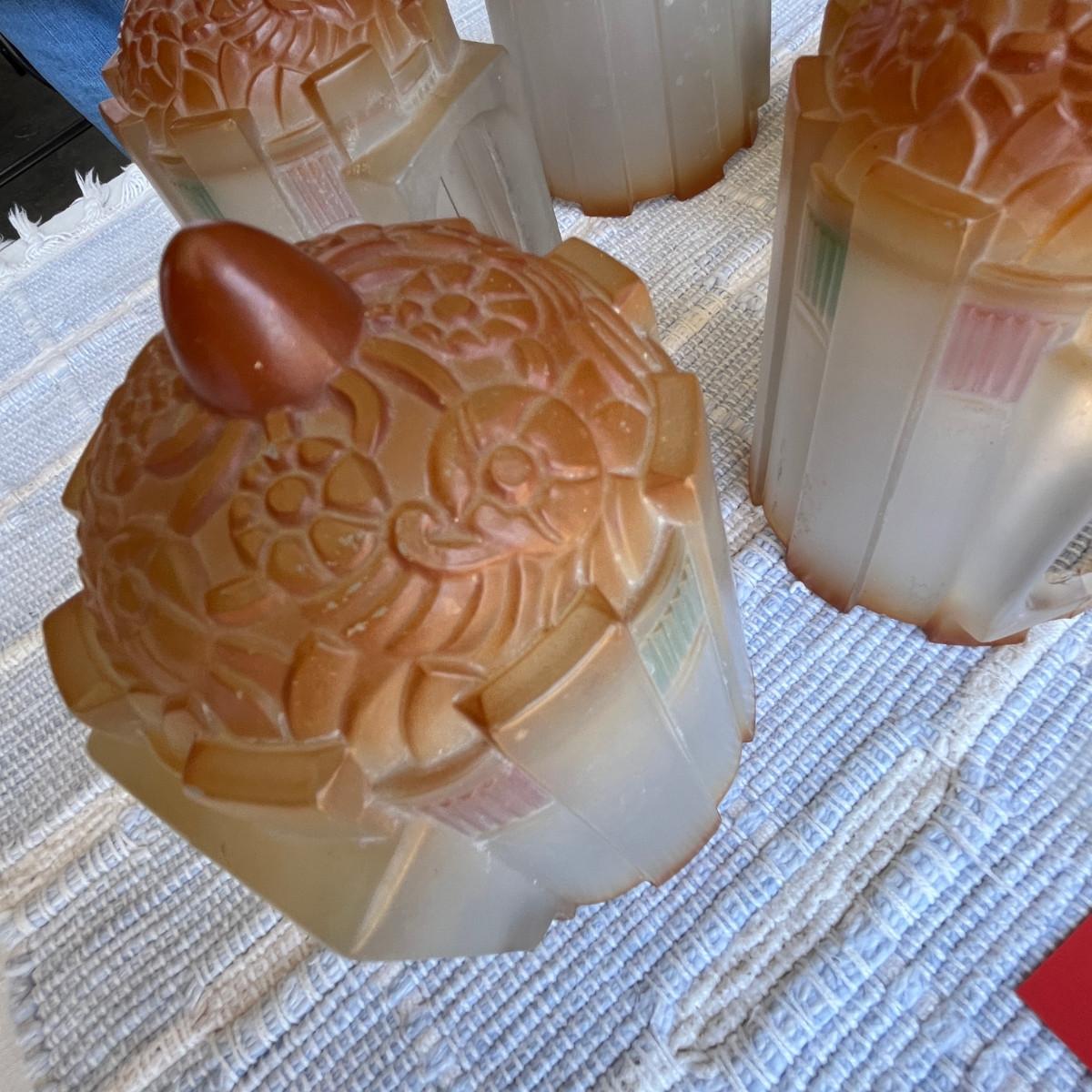 These are photographed upside down. Hard to find, probably Consolidated Glass, No damage.