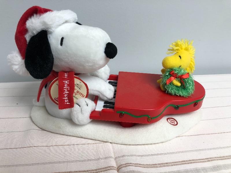 Snoopy playing piano with Woodstock. Needs batteries, vintage condition.