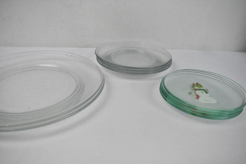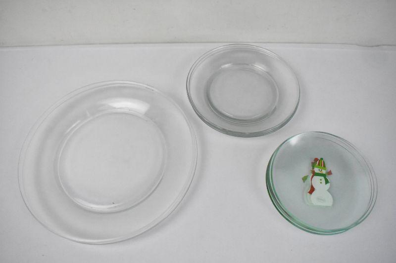 5 Clear Glass Dishware & 4 Snowman Mini Plates