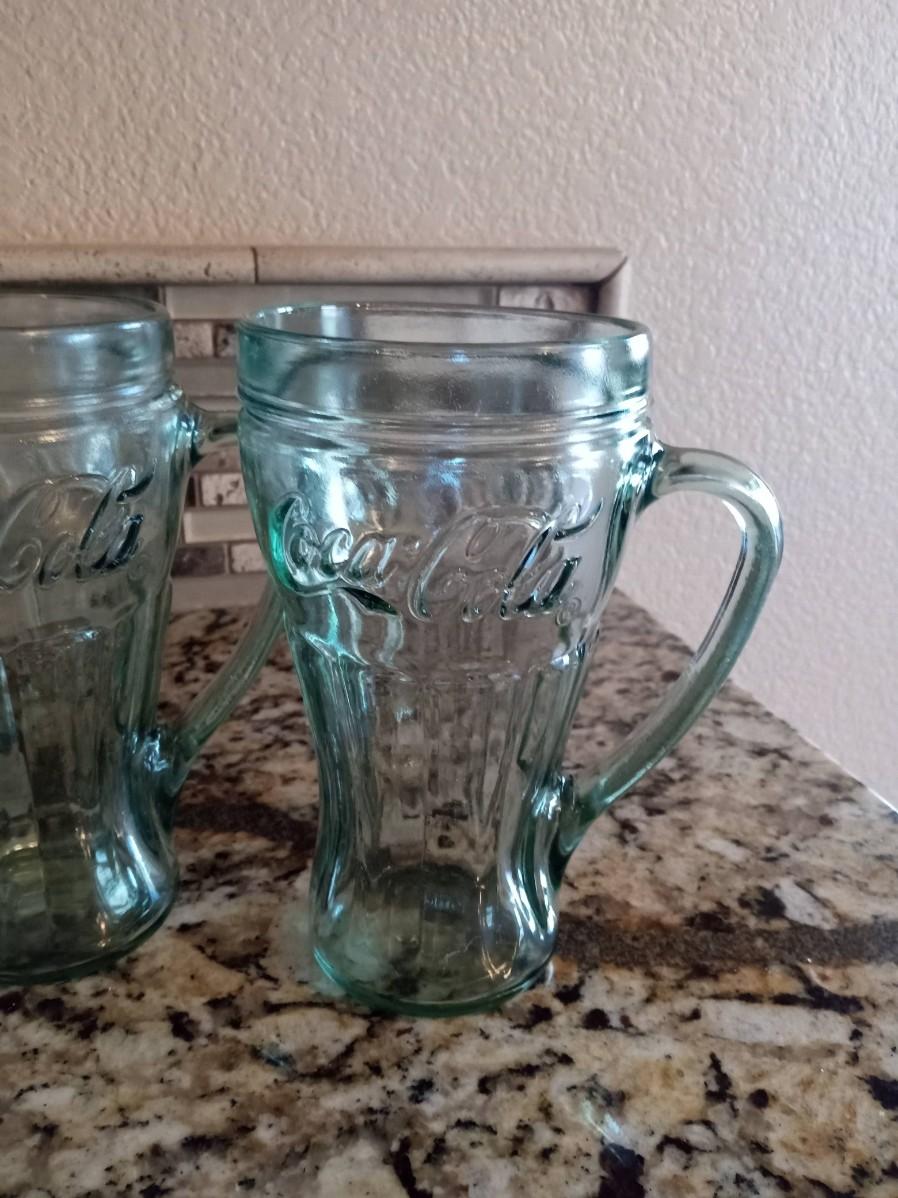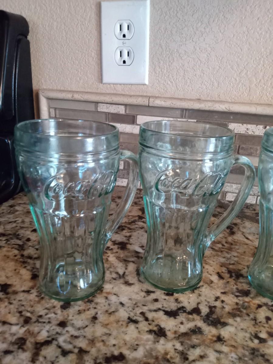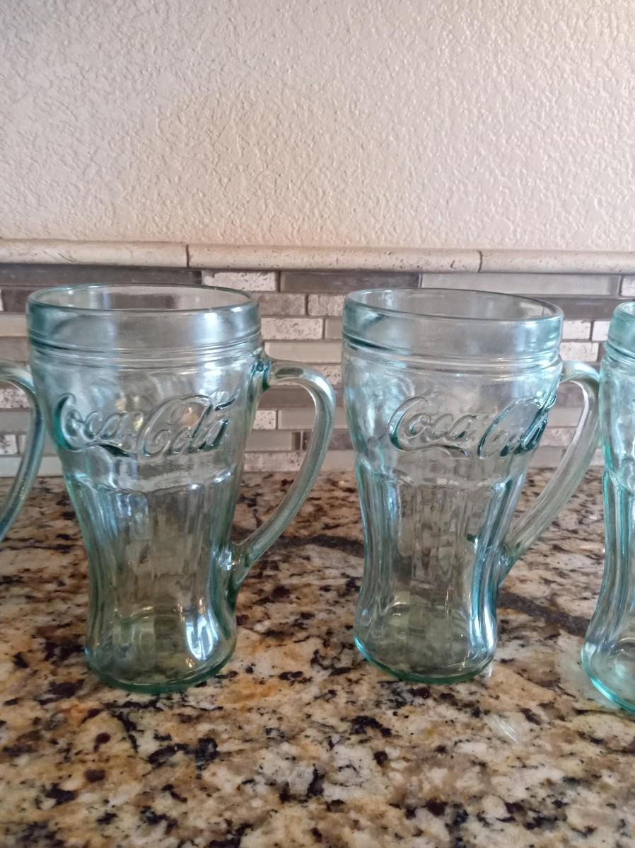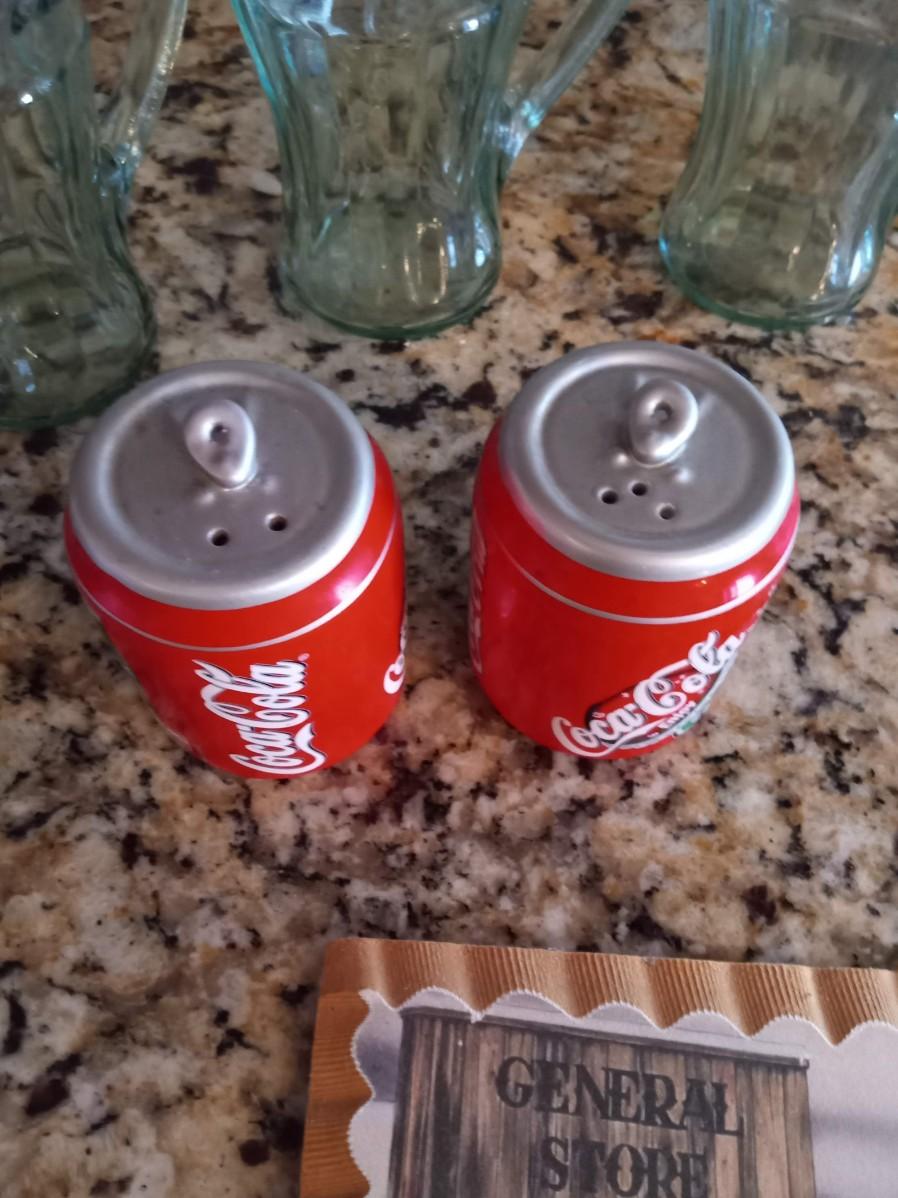 5 COCA-COLA DRINKING GLASSES, SALT/PEPPER SHAKERS, SMALL SIGN AND PLUSH BEAR