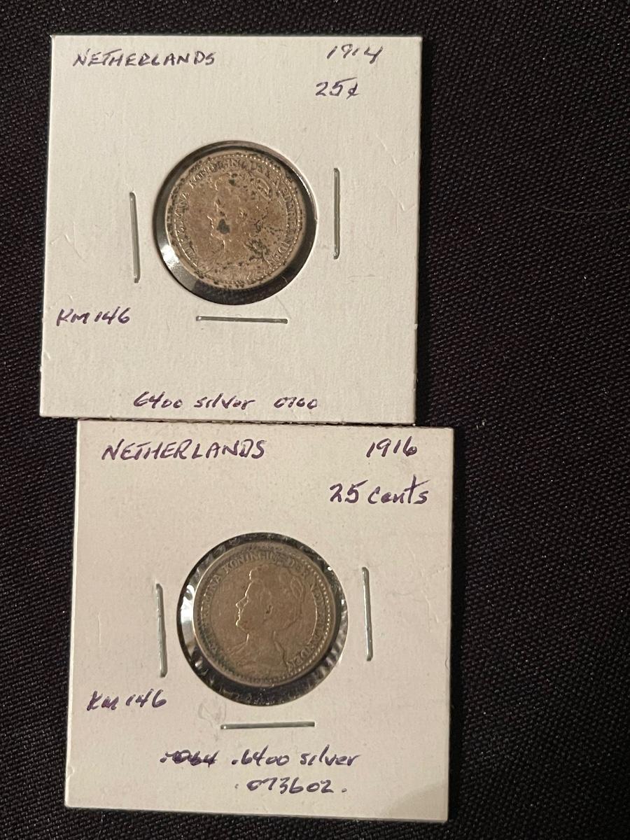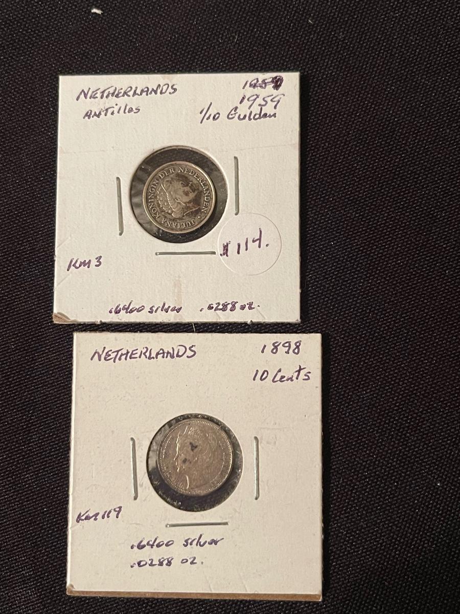 1710 Liard km 12 coin, 1959 antillos 1/10 gulden km 3, 1914 25 cents km 146, 18776 10 cent km 80, 1898 10 cent km 119, 1916 25 cent km 146