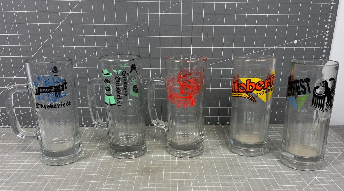 (5) Collectible OCTOBER FEST from SNOWBIRD Medium Glass Steins