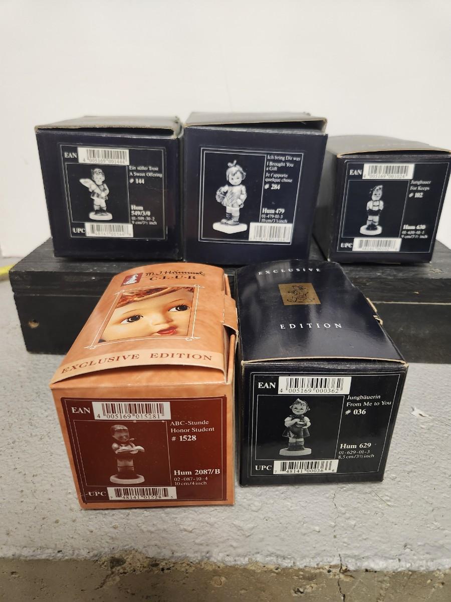 5 Hummels exclusive to the collectors club with the boxes and paperwork