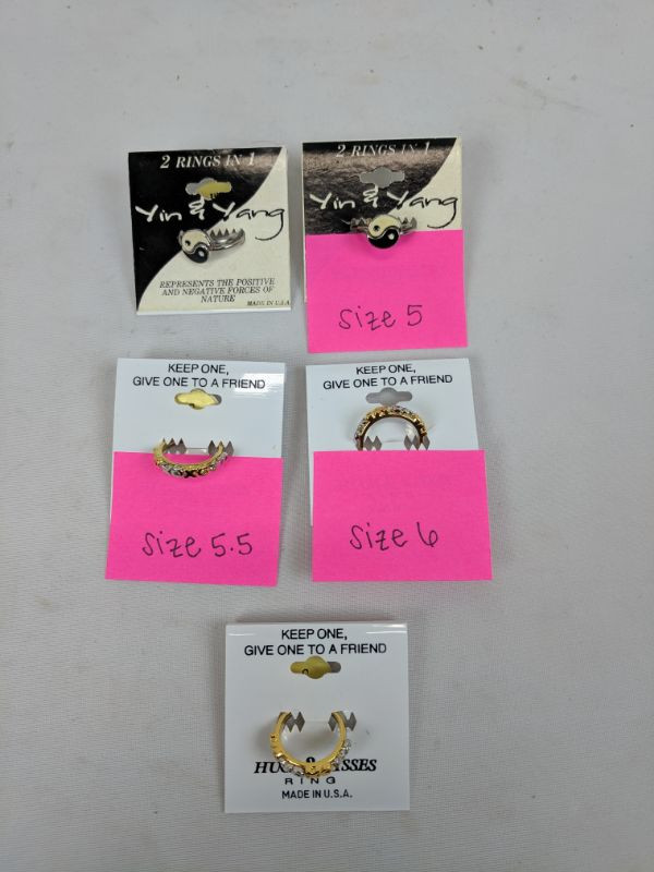 5 Costume Jewelry Rings, 1 Size 5, 2 Size 5.5, 2 Size 6 - New