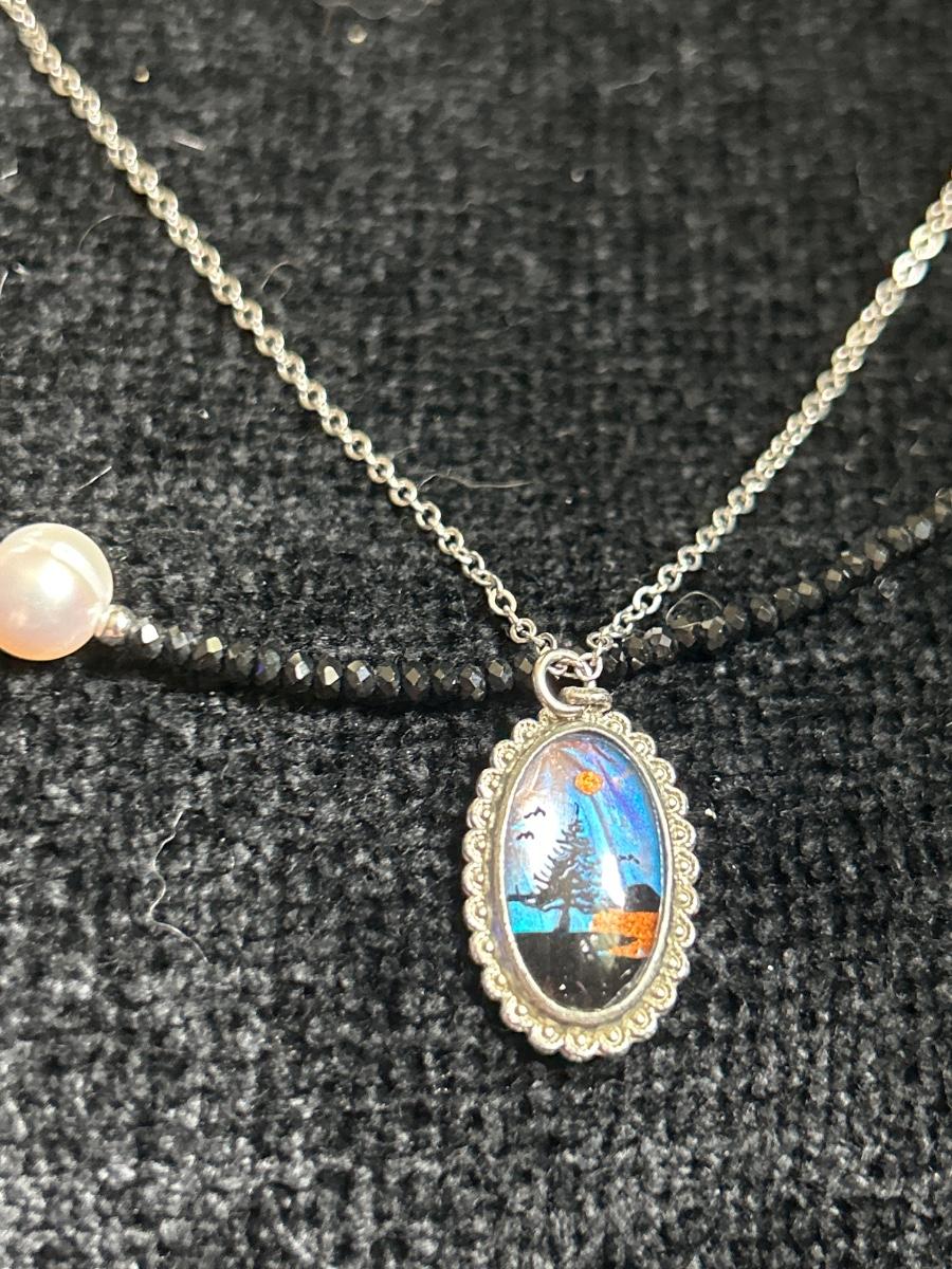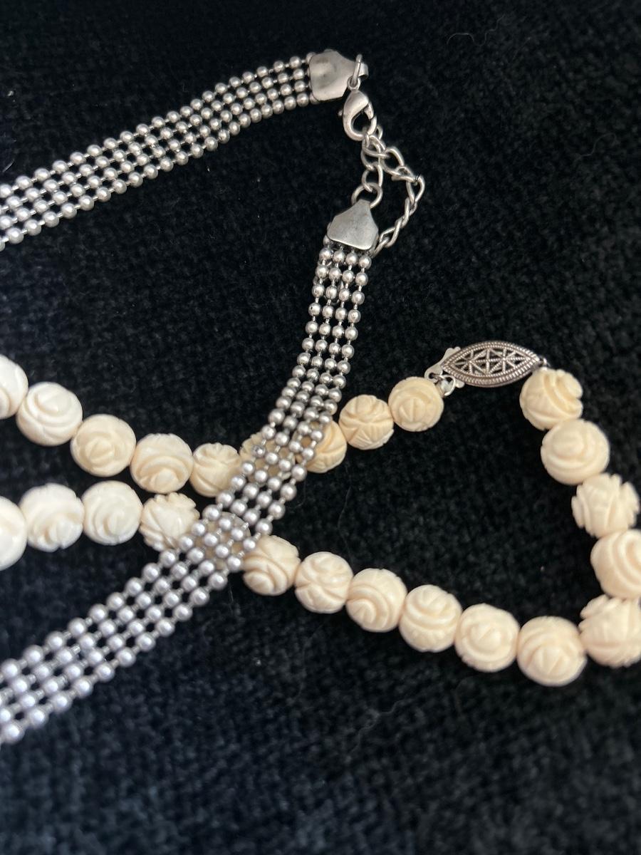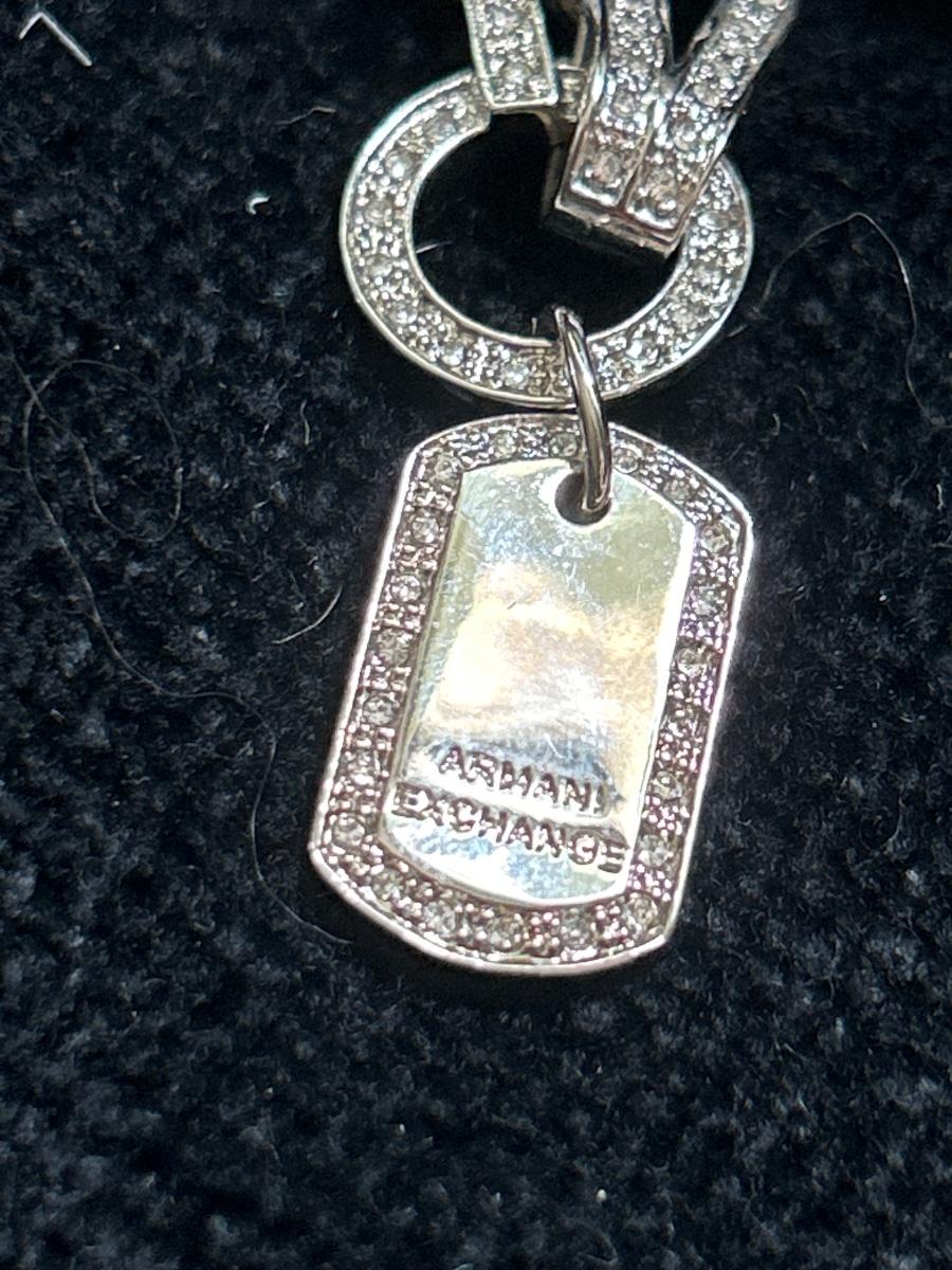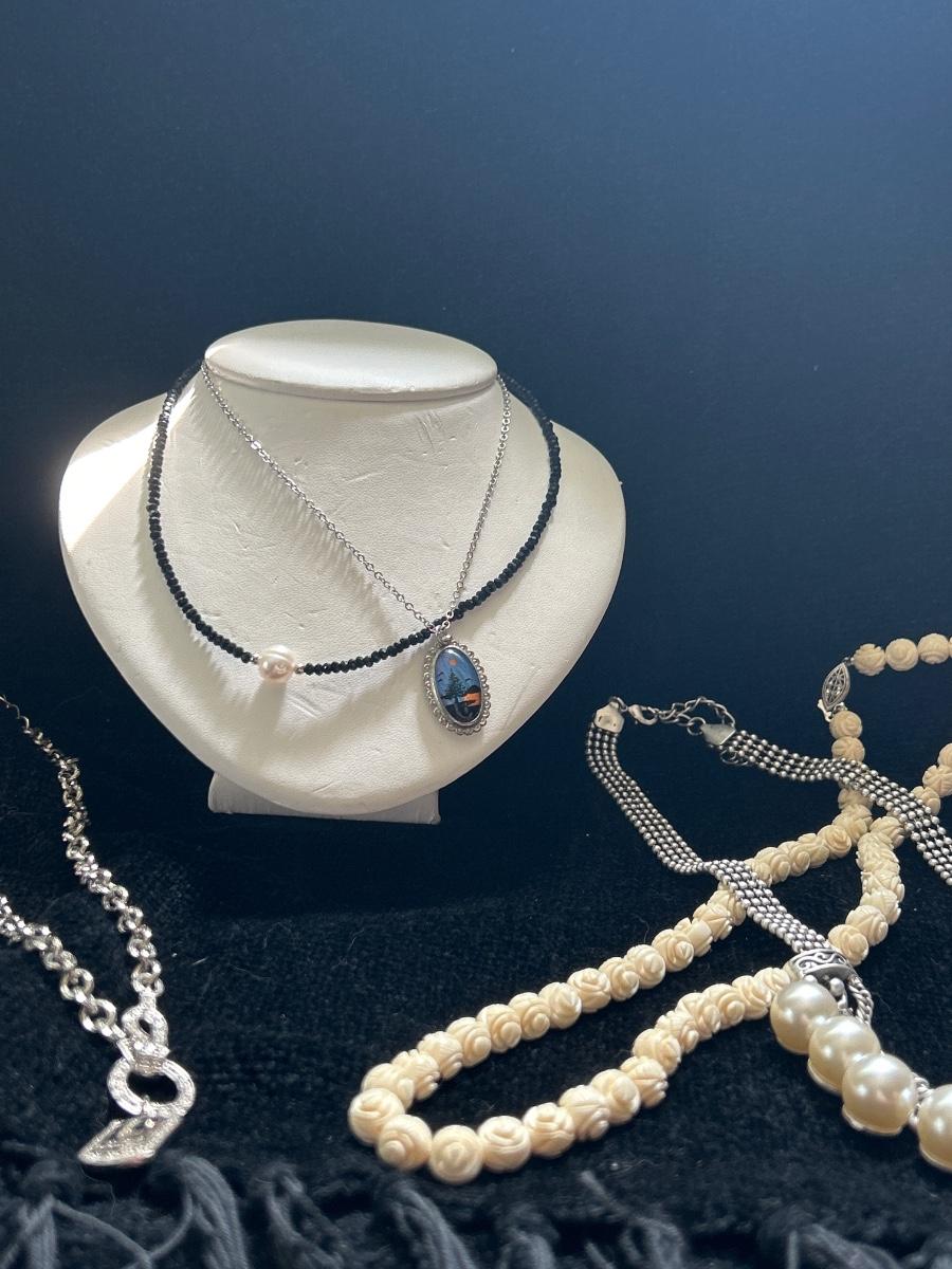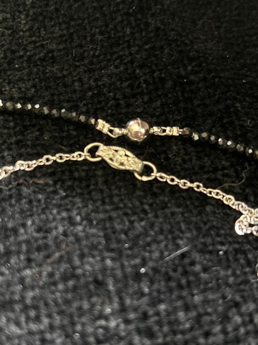 Necklace on the left is Armani Exchange, the black bead necklace has a magnetic clasp.