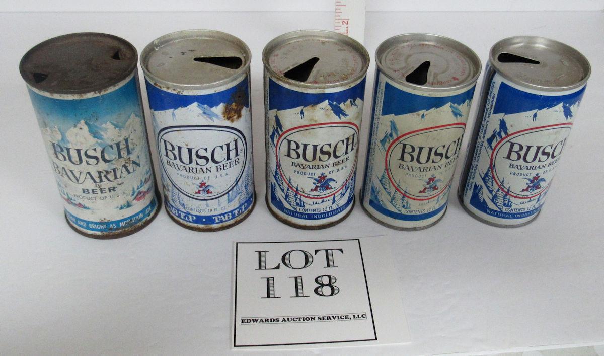 5 Different Vintage Busch Beer Cans No Duplicates, 1 Flat Top - Read description for more info on the beer cans