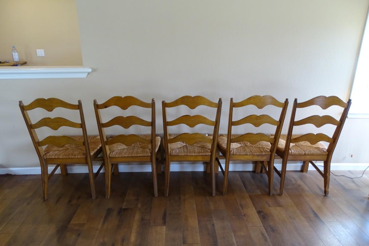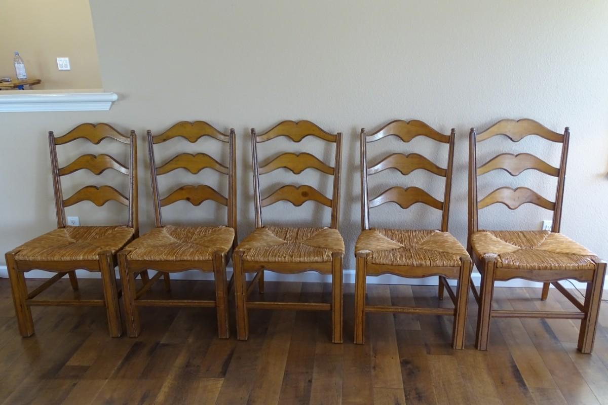 5 Antique Ladderback Rush Seat Dining Chairs Vintage Chair Kitchen Seating Wood Country French Farmhouse Woven Traditional Cottage Rustic
