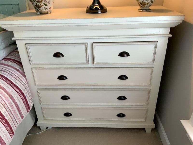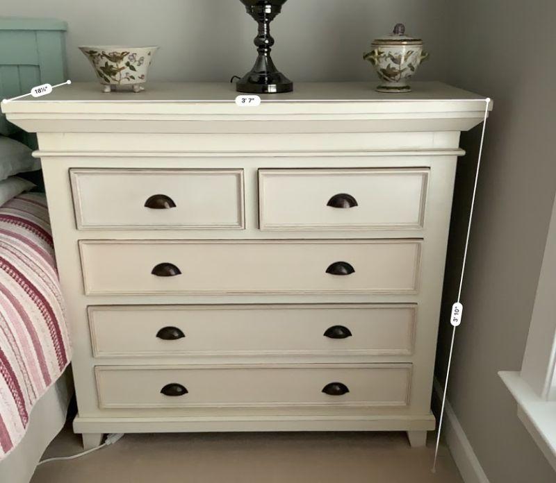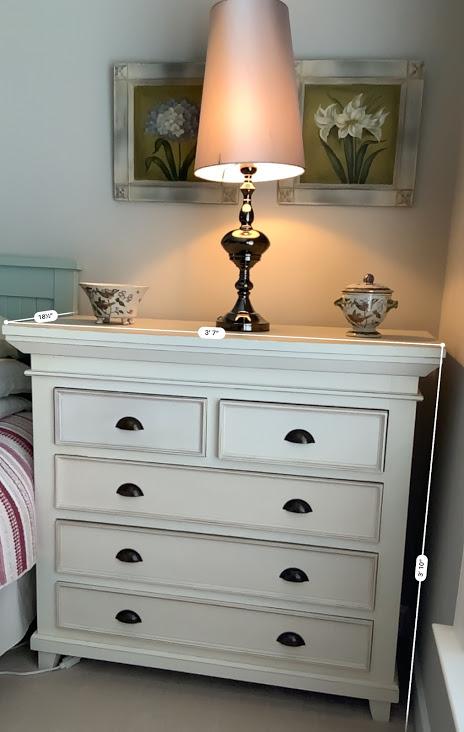 Beautiful handpainted 5 drawer dresser with brass finished pulls