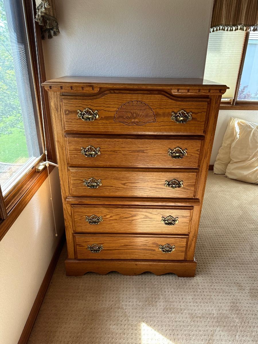 5 DRAWER CHEST W/NATURAL OAK FINISH