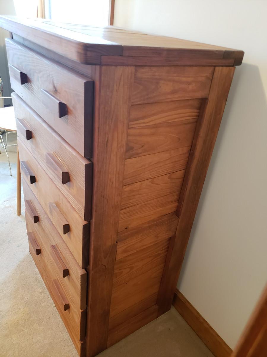 Mission style dresser measures 29x20x46. See pictures for more details.