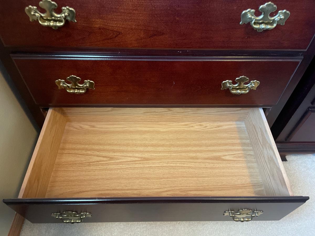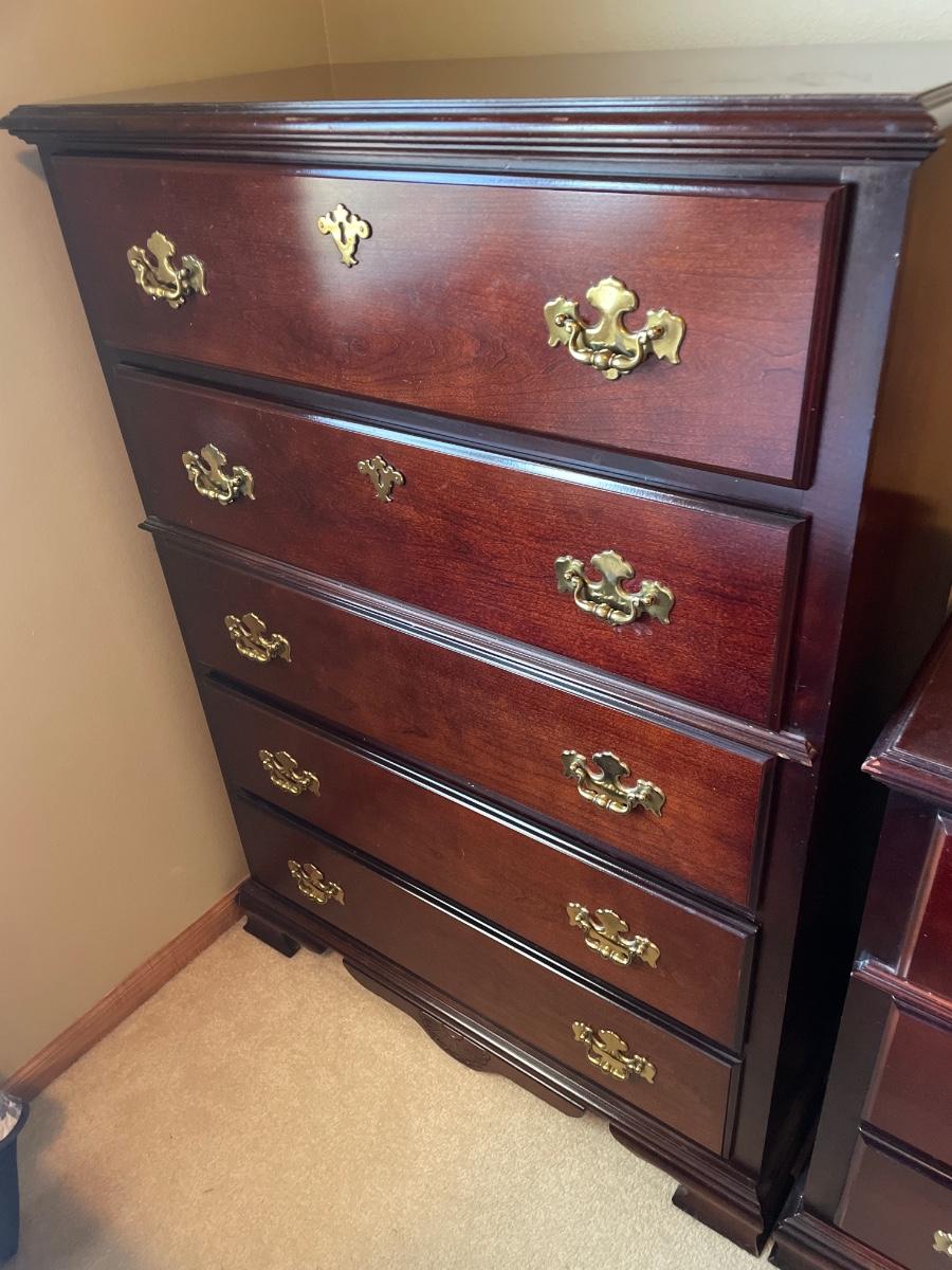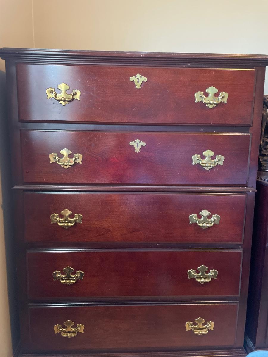 Dimensions 36” wide x 49” tall x 18” deep. No visible brand name. The last picture is found on the rear of the dresser.