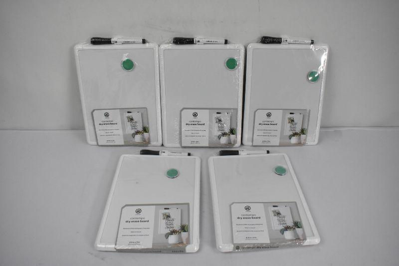 5 Dry Erase Boards with Markers & Magnets, 8.5" x 11" & Mounting Strips - New