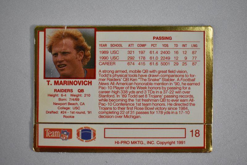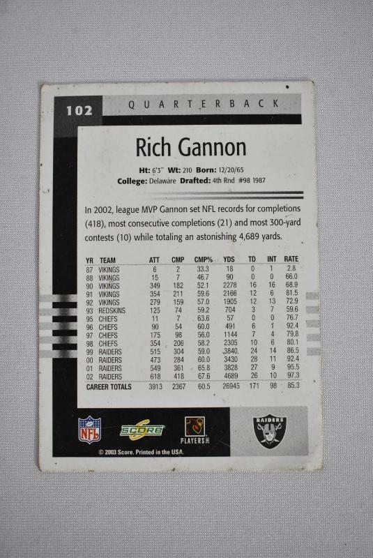 5 Football Cards: Brown, Gannon, Kelly, Marinovich, Seau: 1991-2003