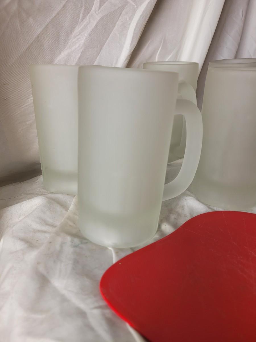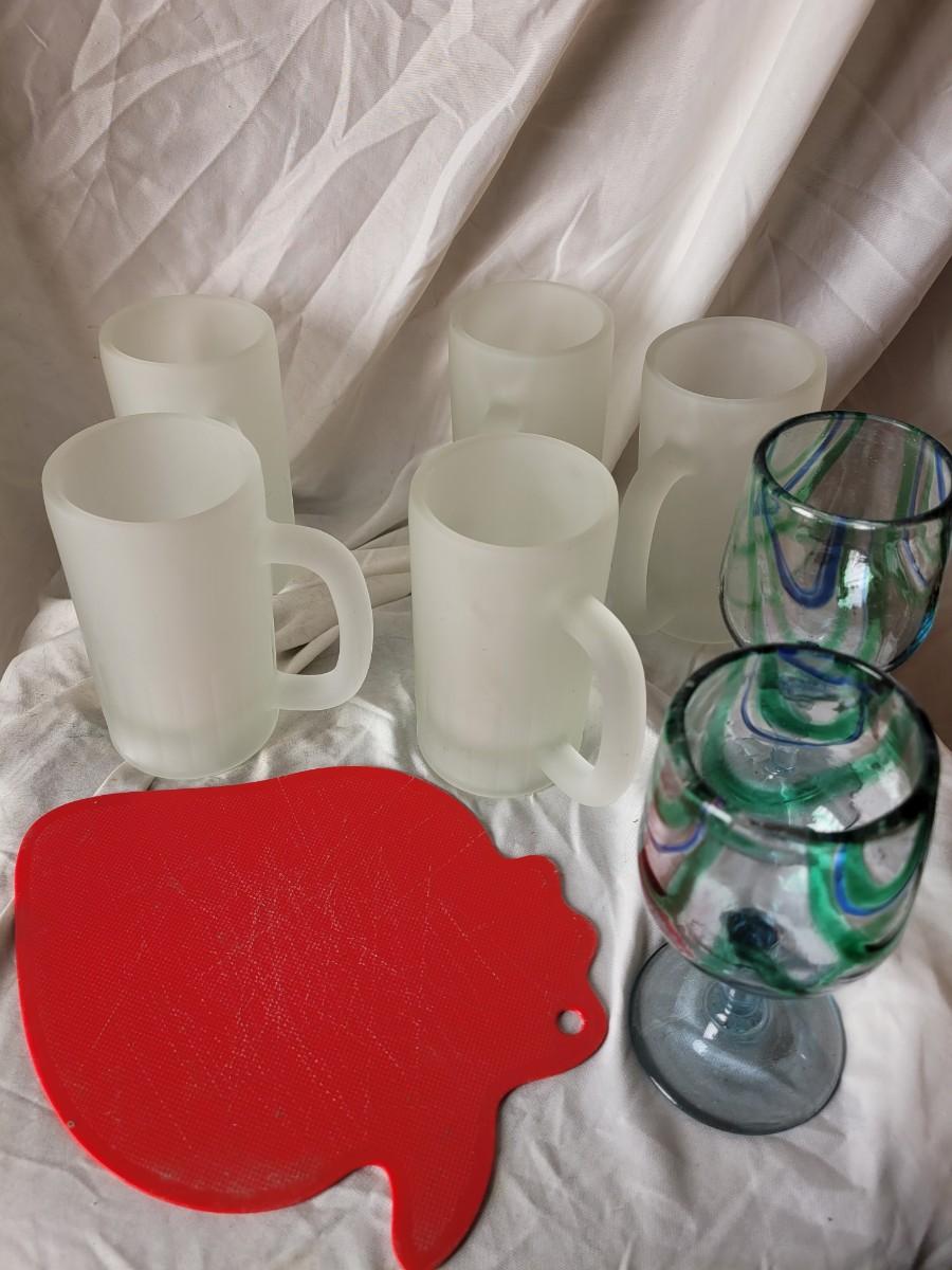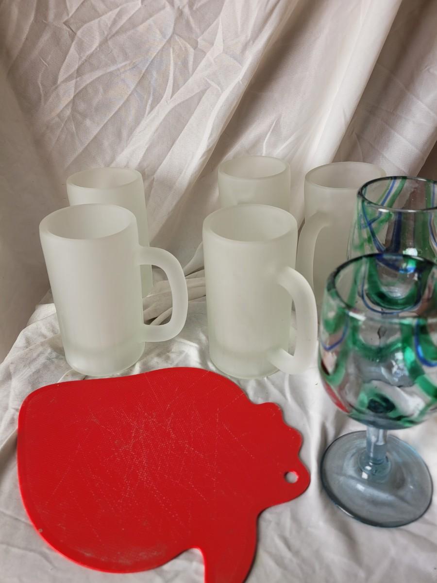 5 Frosted glasses for beer, 2 big wine/beer glasses & hotpad in a tubt