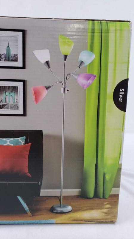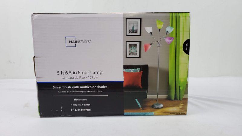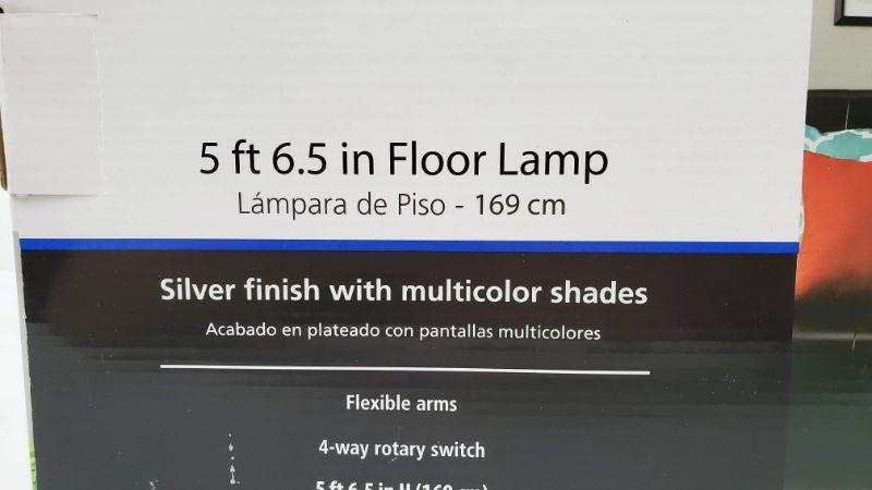 5 ft 6.5 in Floor Lamp, Silver with Multicolor Shades - New