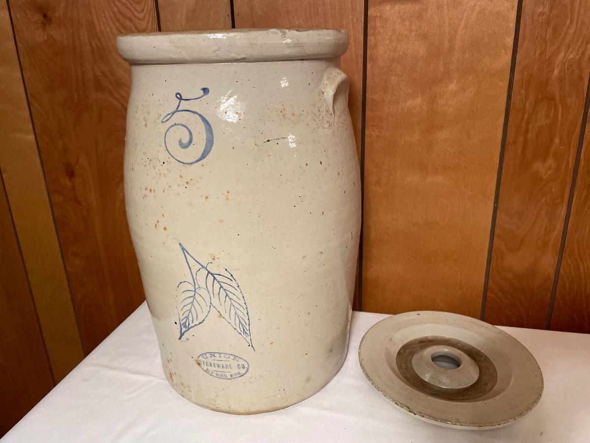 5 Gal. Union (Red Wing) Stoneware butter churn