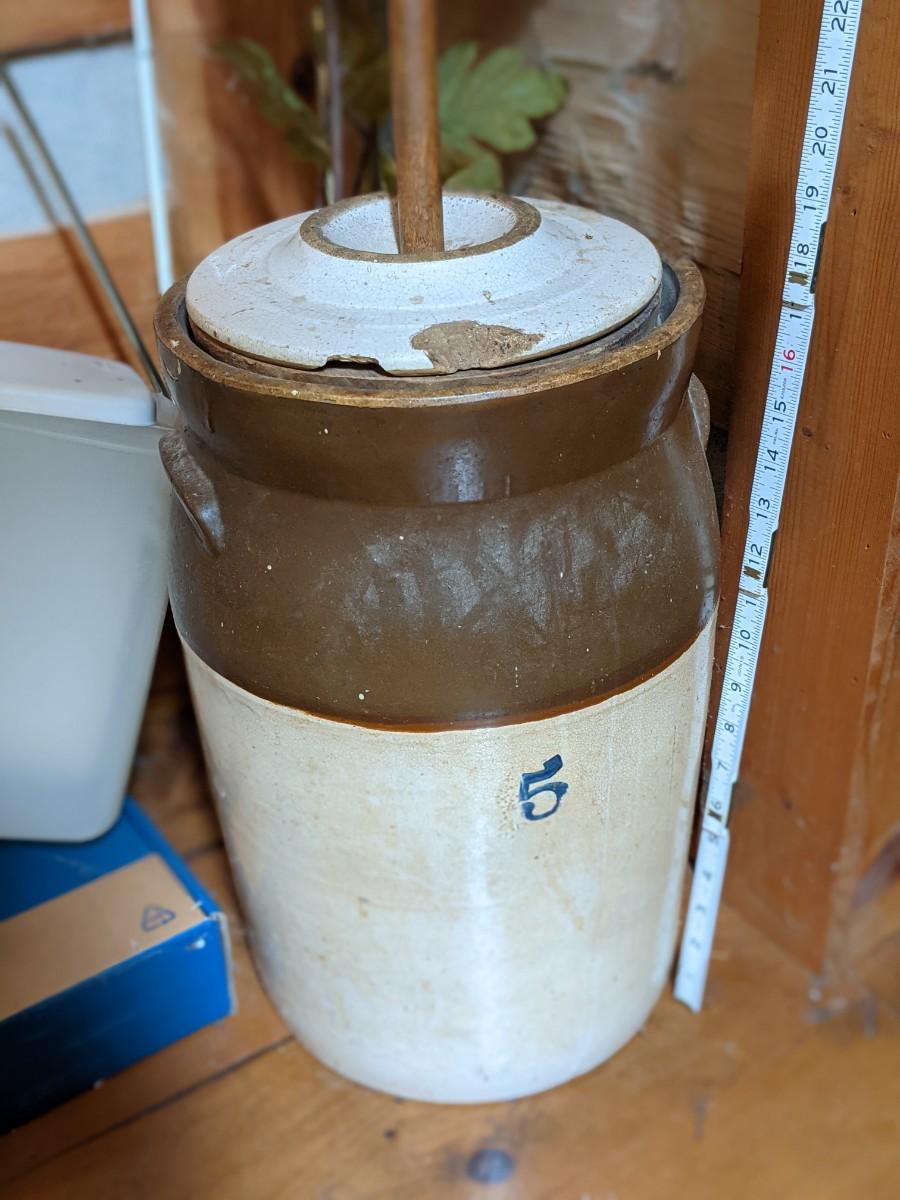 5 gallon Butter Churner, very nice shape with chip in lid only