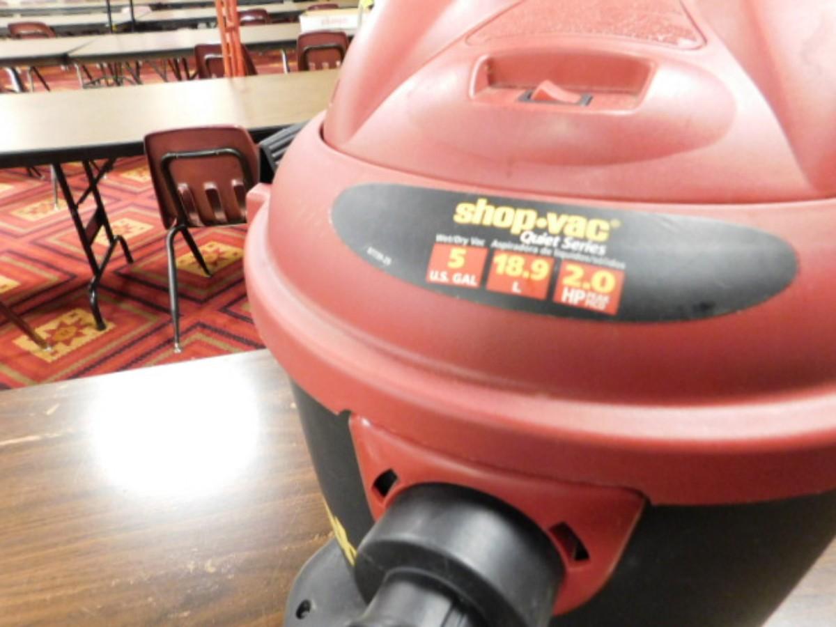 5 Gallon Shop-Vac 2HP Appears to work. Expect some wear or scratches to finish. Shipping option available via freight or local mover at Buyer's expense. Buyer must have all shipping scheduled within the stated dates and times of pickup. Recommended local mover is Beaty Bros. Moving 828-201-2982