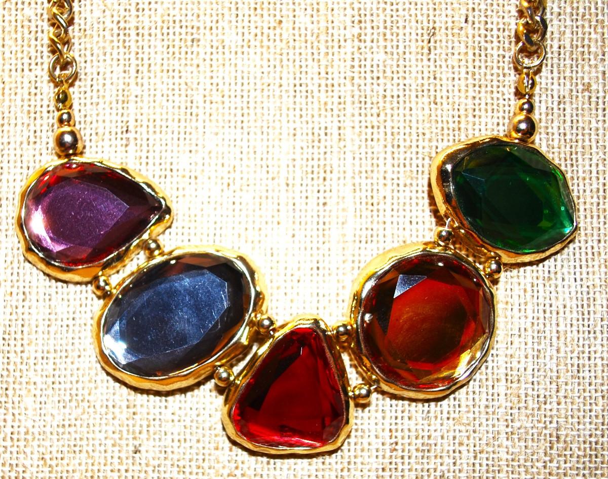 5 Glass Multicolor Teardrops Necklace 13" L