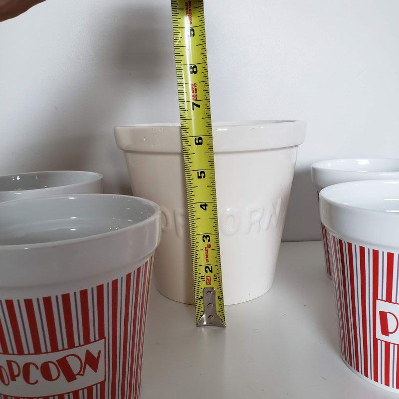5 Glass Popcorn Cups - 1 large, 4 small. Measurements in pictures