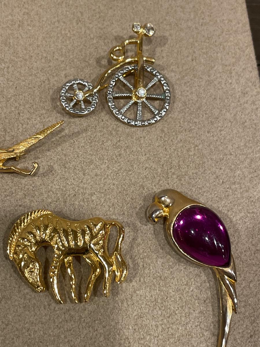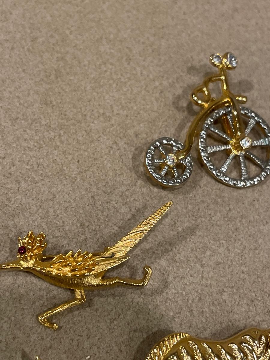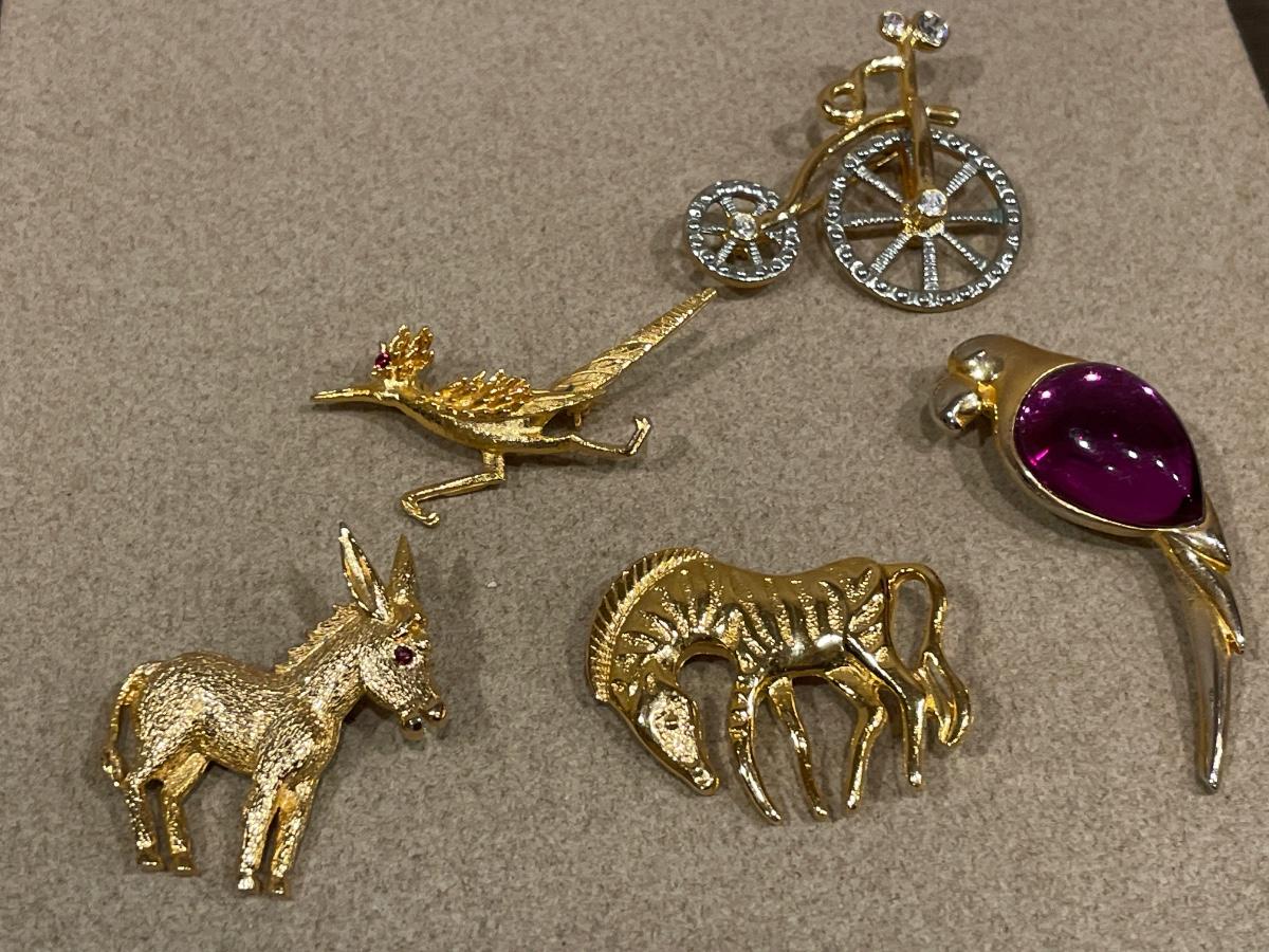 Includes bicycle with moving wheel, bird with large purple accent, roadrunner, donkey and zebra