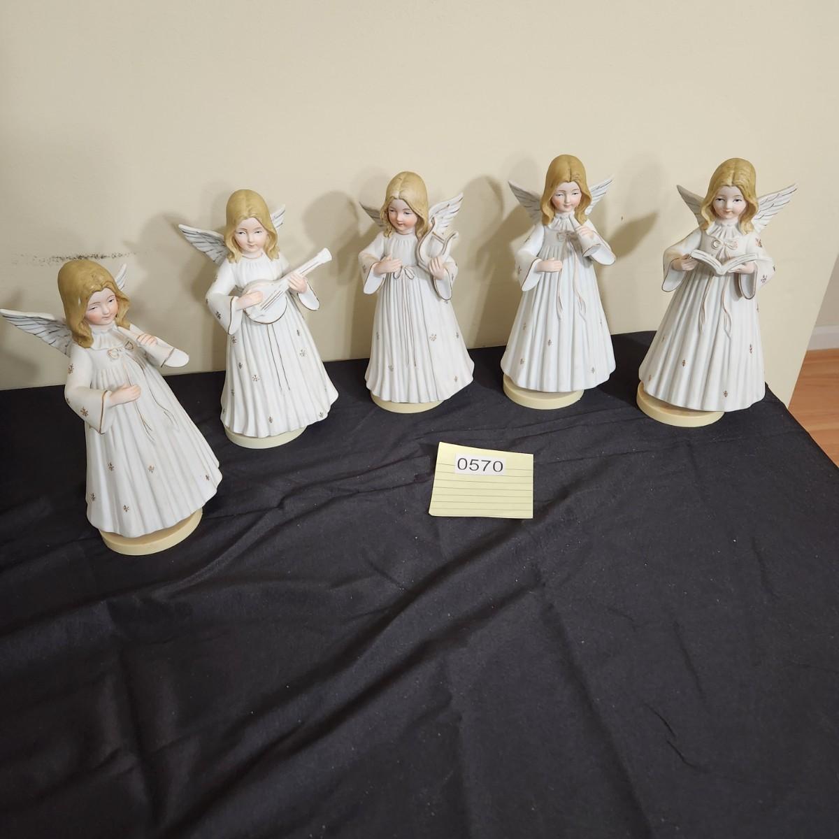 5 GORHAM ROTATING MUSICAL 8" PORCELAIN ANGELS Lot 570