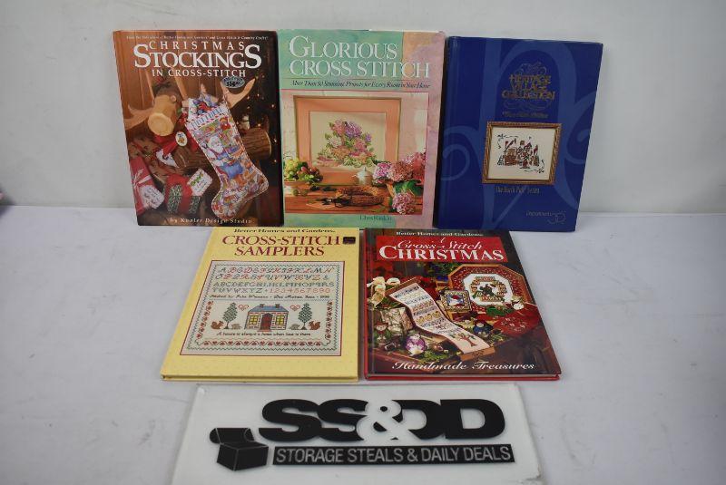 5 Hardcover Crafting Books, Mostly Christmas & Cross Stitching