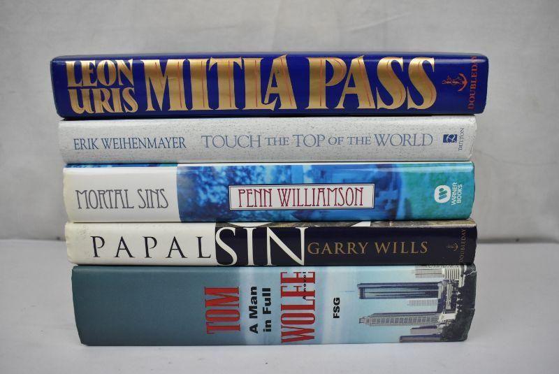 5 Hardcover Fiction Books, Authors Leon Uris -to- Tom Wolfe