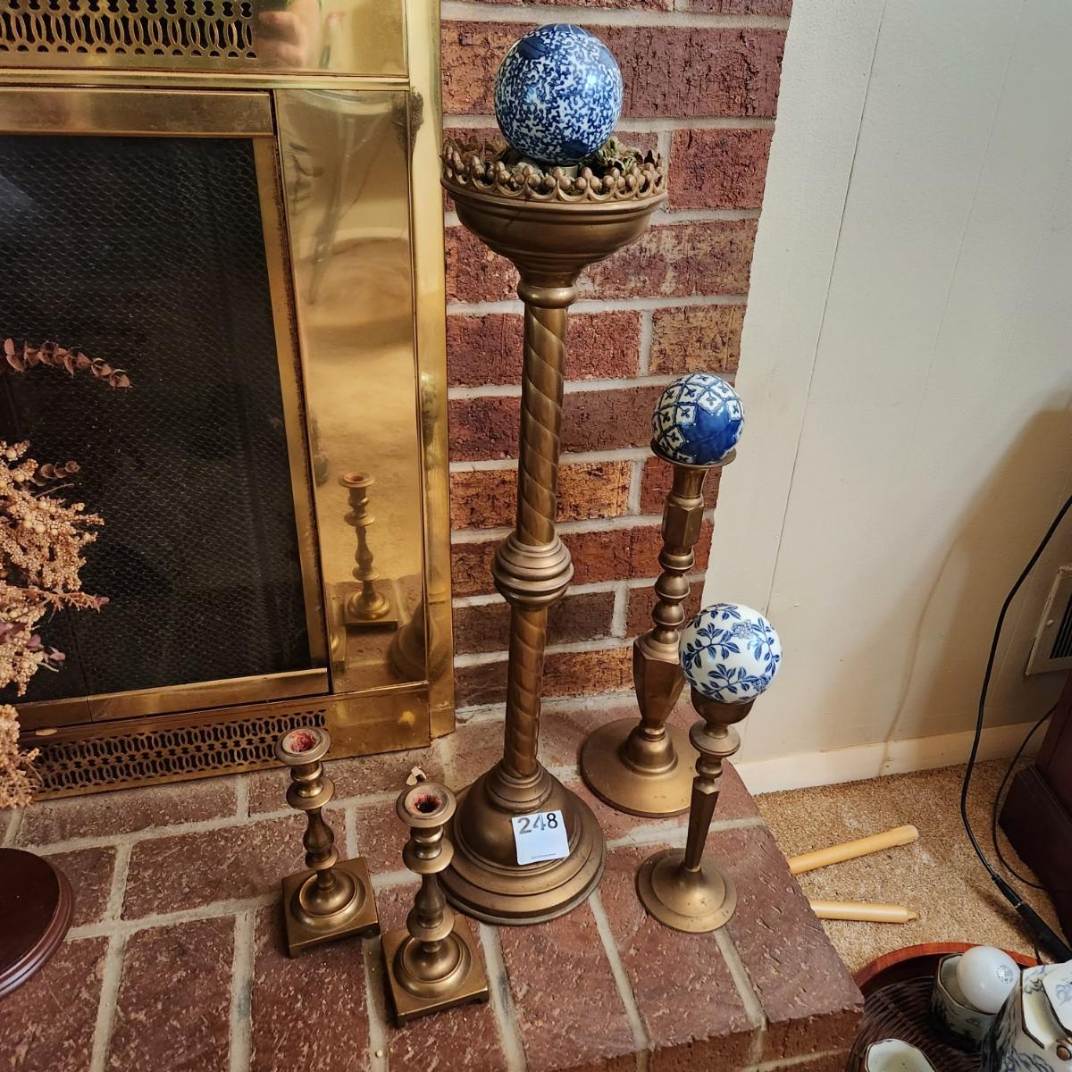 5 Heavy Metal Candle Holders Includes 3 Blue white Spheres