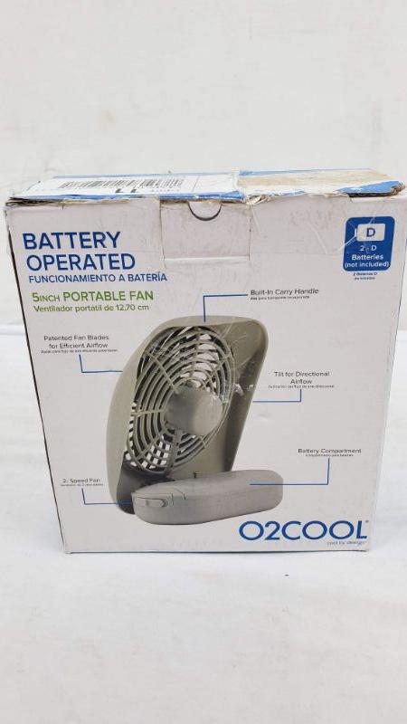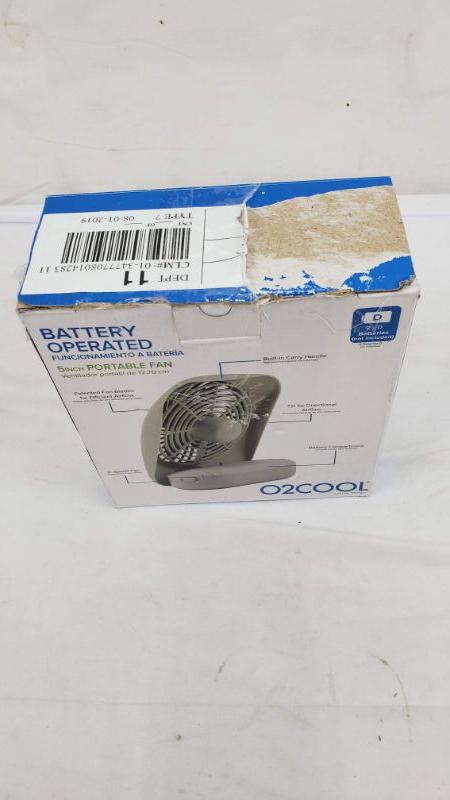 5 Inch Portable Fan, Battery Operated, O2Cool - New, Damaged Box