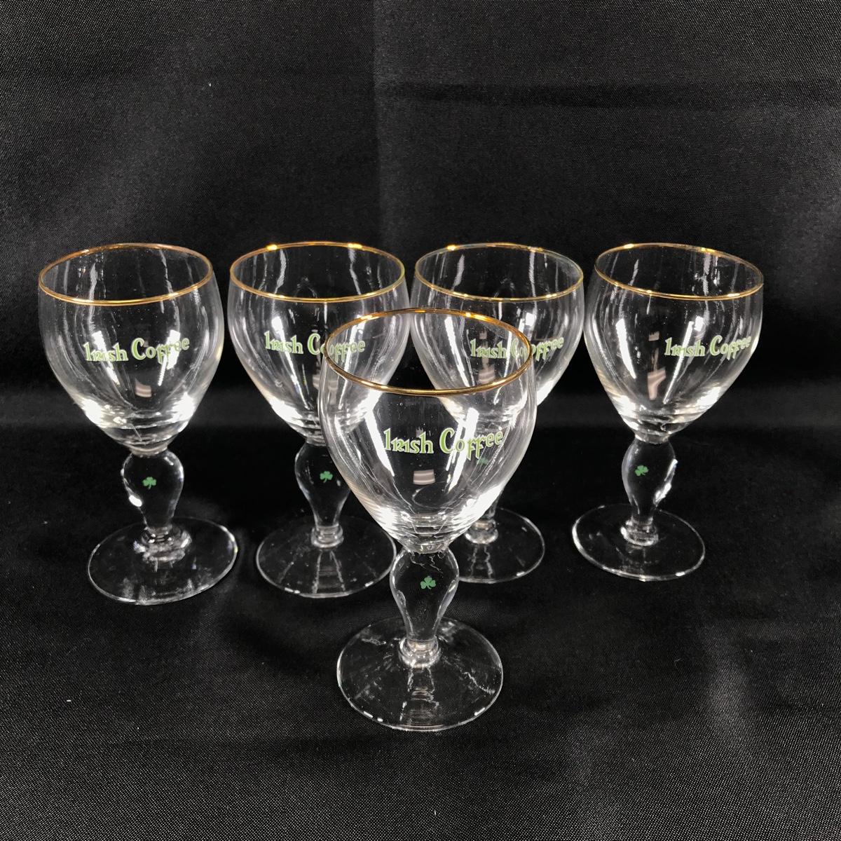 A lot of five, “Irish Coffee” glass chalices. Each glass features a gold rim. No visible damage; see pictures.