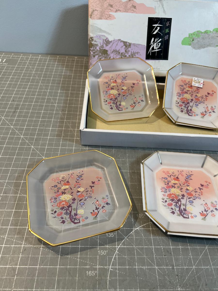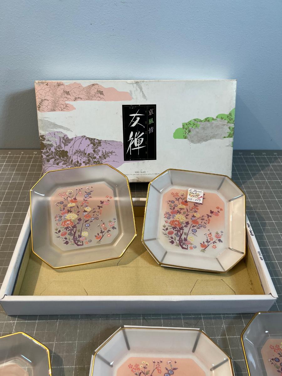 5 Japanese GLASS Plates, in Original Box