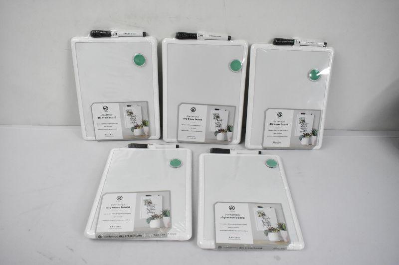 5 Magnetic Dry Erase Boards, 8.5x11, Includes 1 Pen, 1 Marker, and Mounting Strips - New