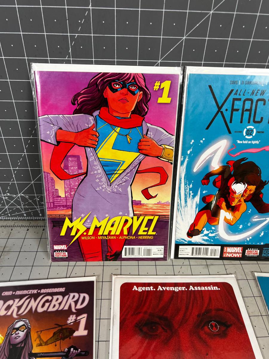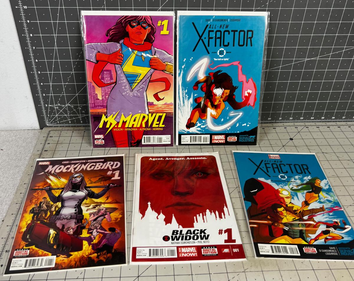 5 Marvel Comics; Black Widow, Ms. Marvel, x Factor,