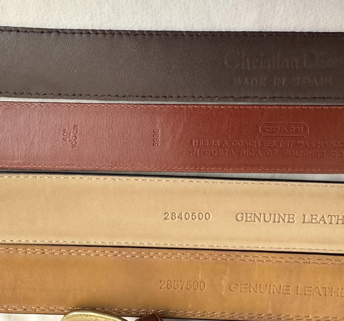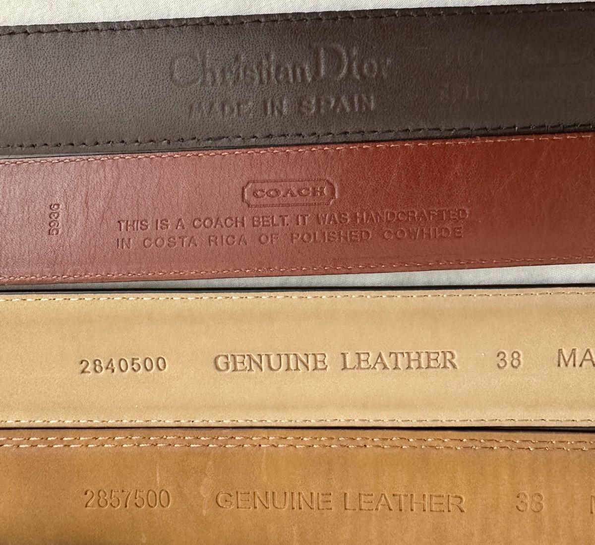 6 Men's Belt Lot, Leather, Sz. 38 includes Christian Dior and Coach