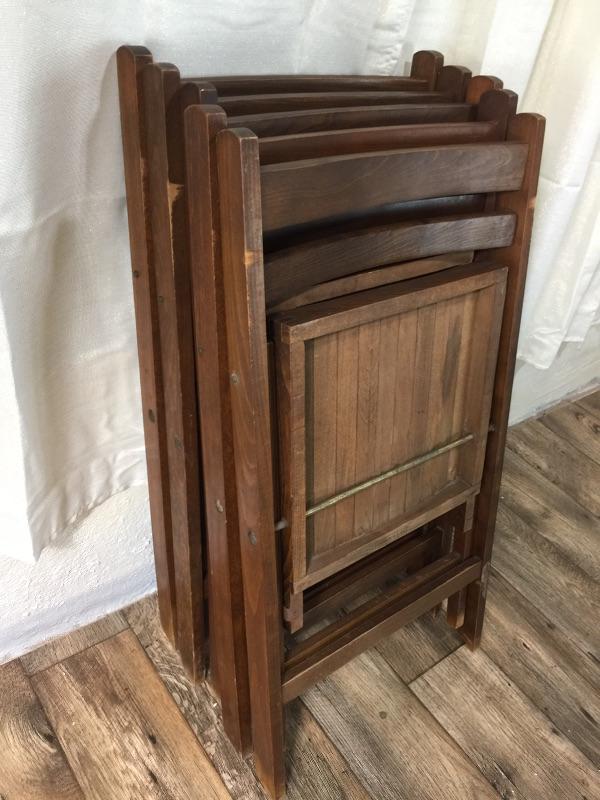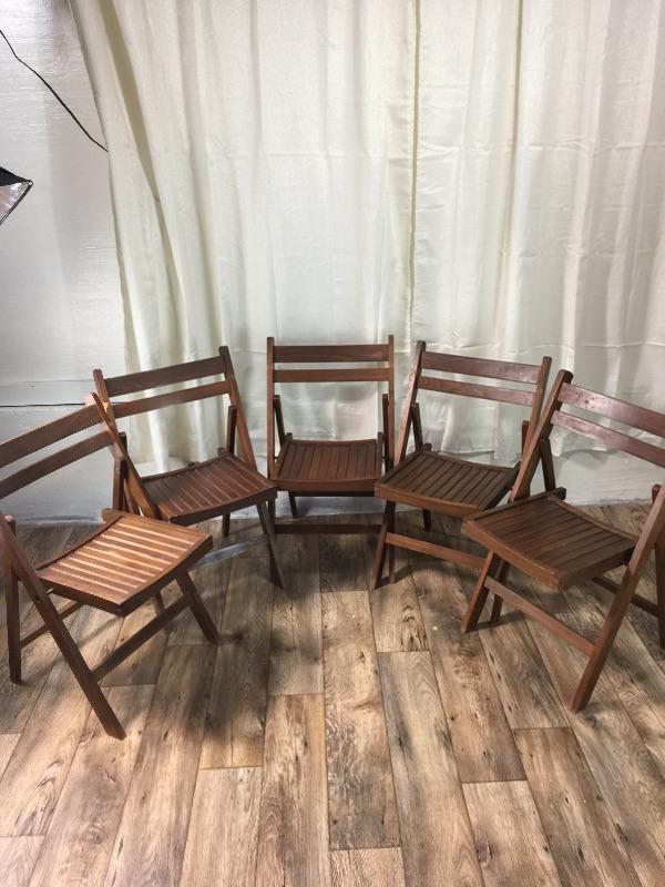 Lot #154 Five Mid Century Slatted Solid Wood Folding Chairs