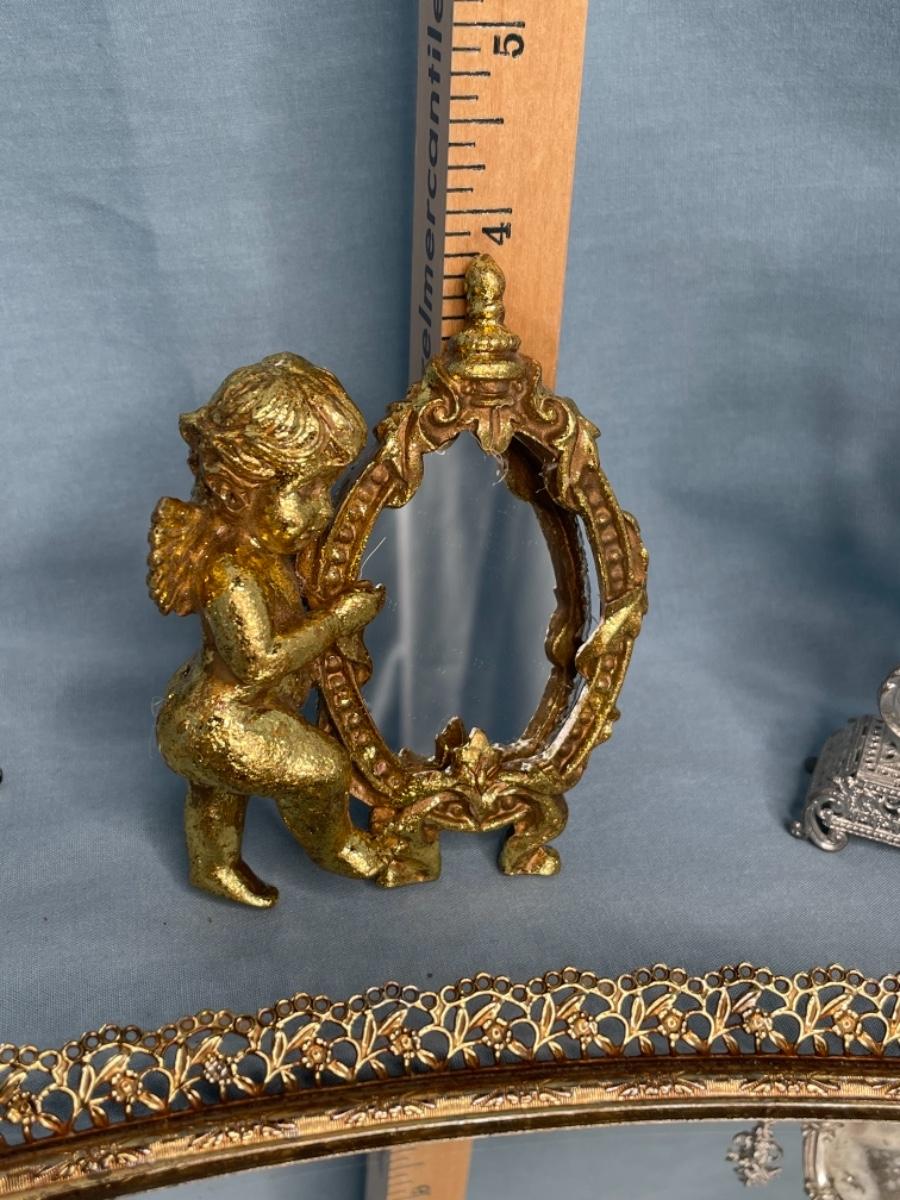 5 Mirrors various sizes, 2 Mirrored Makeup Trays