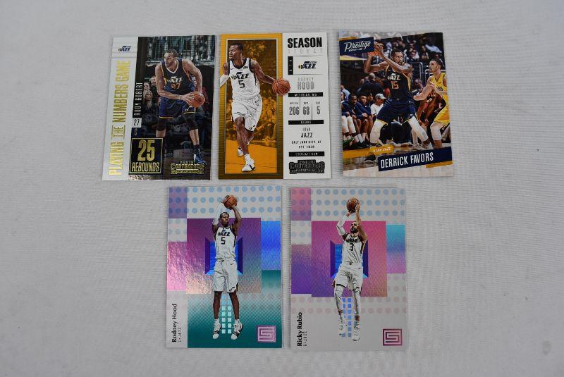 5 NBA Utah Jazz Basketball Cards 2018: Rudy Gobert, Rodney Hood (2), Ricky Rubio, Derrick Favors