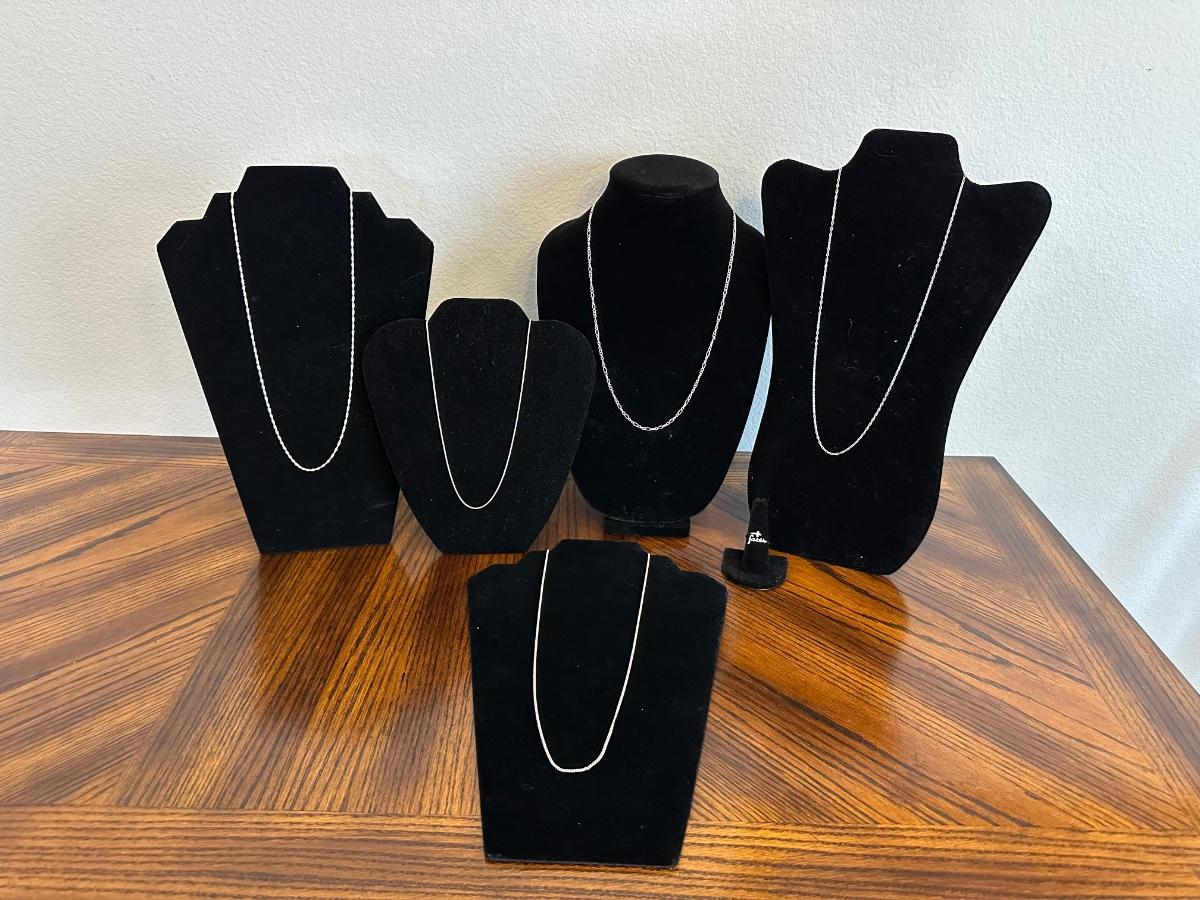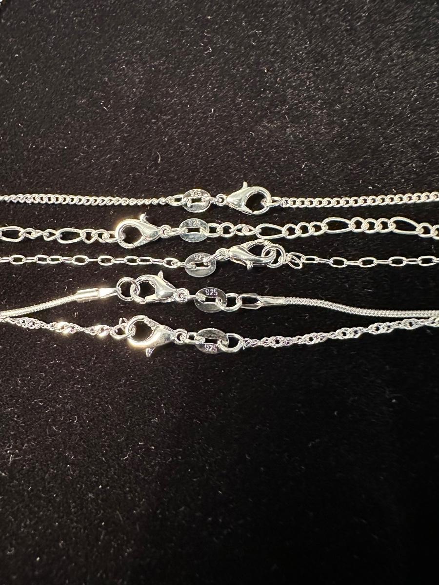 5 NECKLACES STAMPED 925 AND 925 “FAITH” RING
